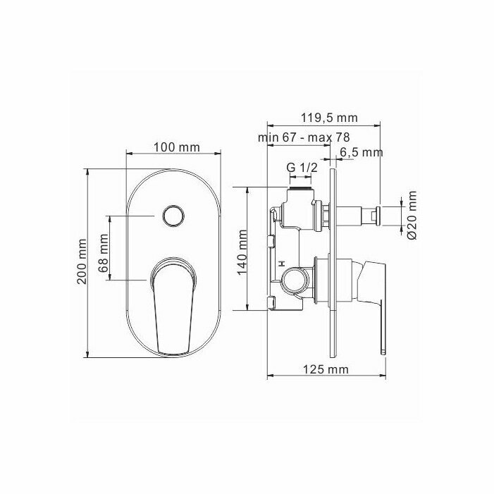 Встраиваемый смеситель для ванны и душа, хром, WasserKRAFT Dill 6161