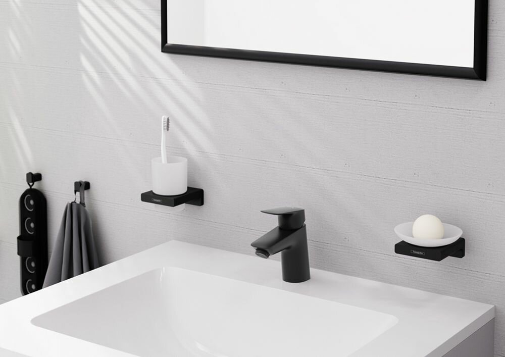 Смеситель для раковины Hansgrohe Logis 100, сливной клапан Push-Open, черный матовый