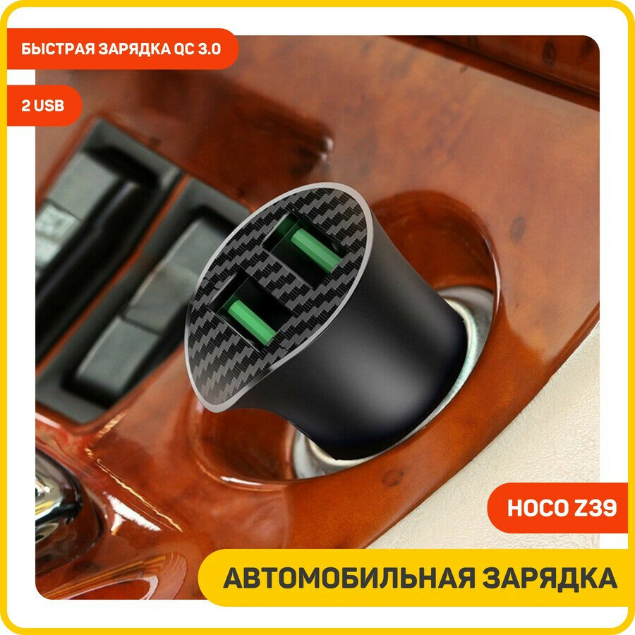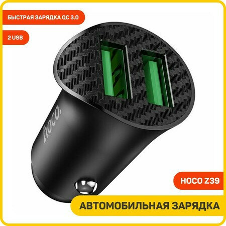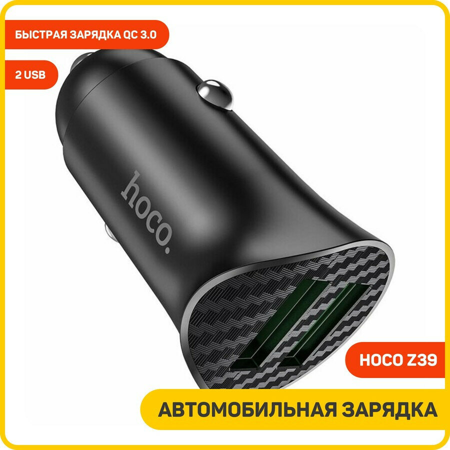 Автомобильное зарядное устройство (АЗУ) Hoco Z39 QC 3.0 (2 USB) 3 А, черный