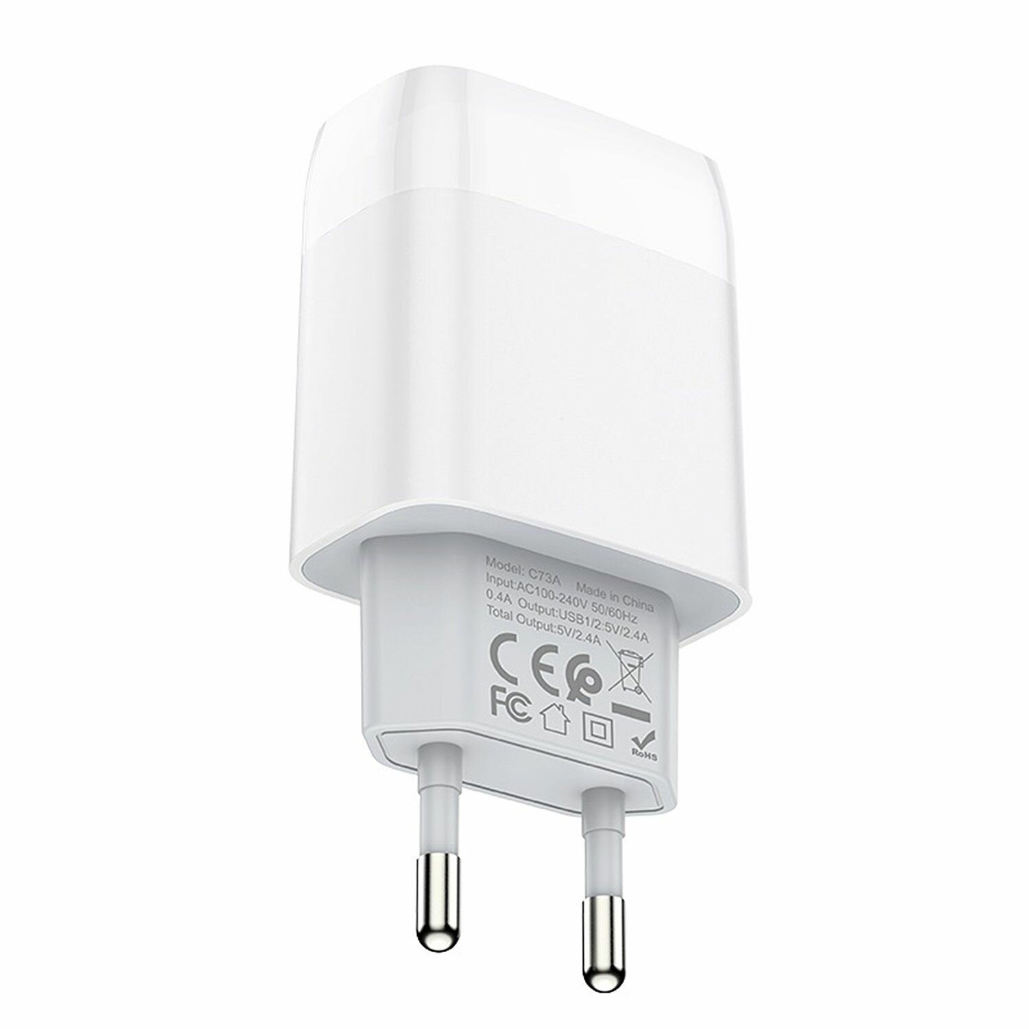 Сетевое зарядное устройство HOCO C73A Glorious 2xUSB, 2.4A, 10.8W, белый