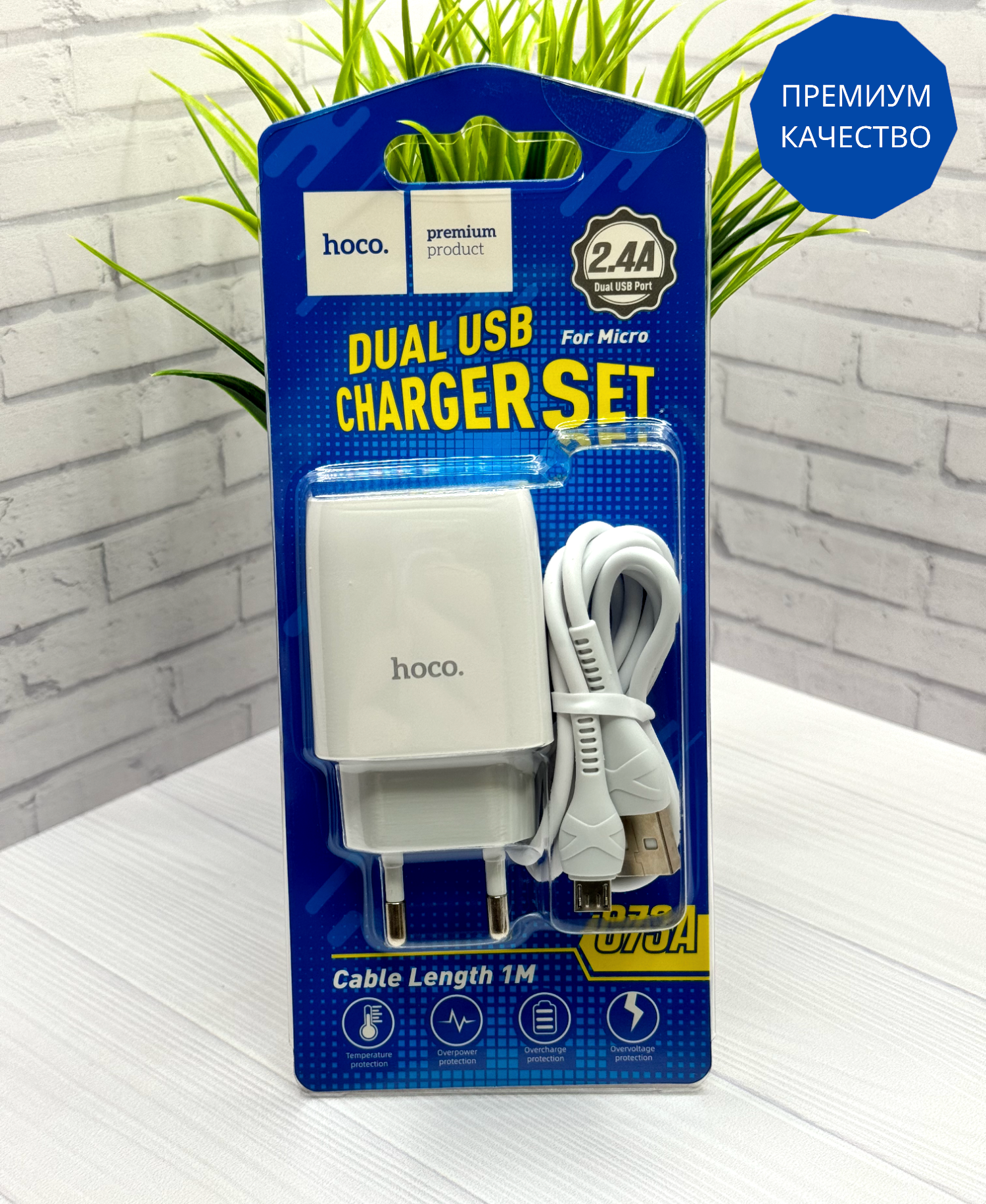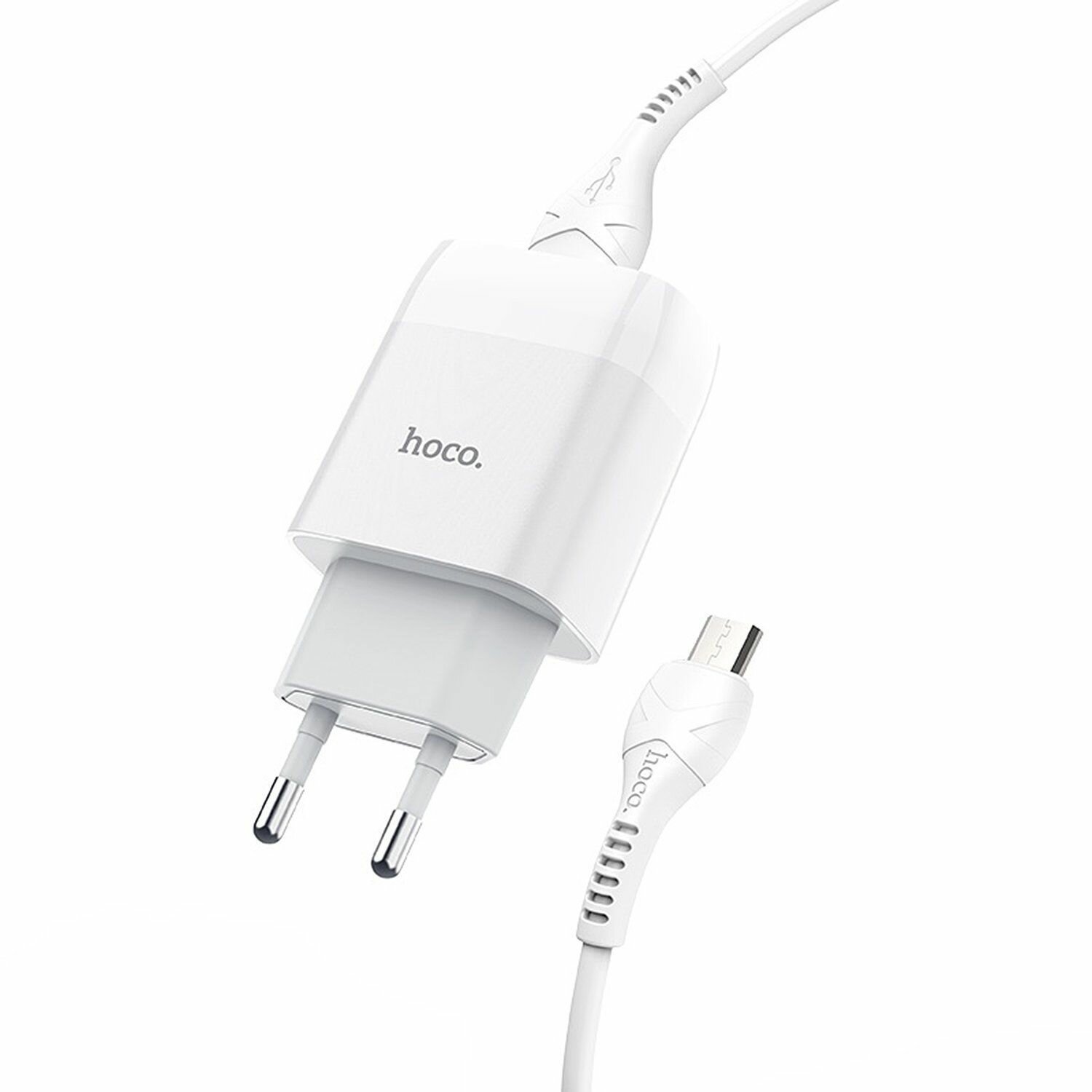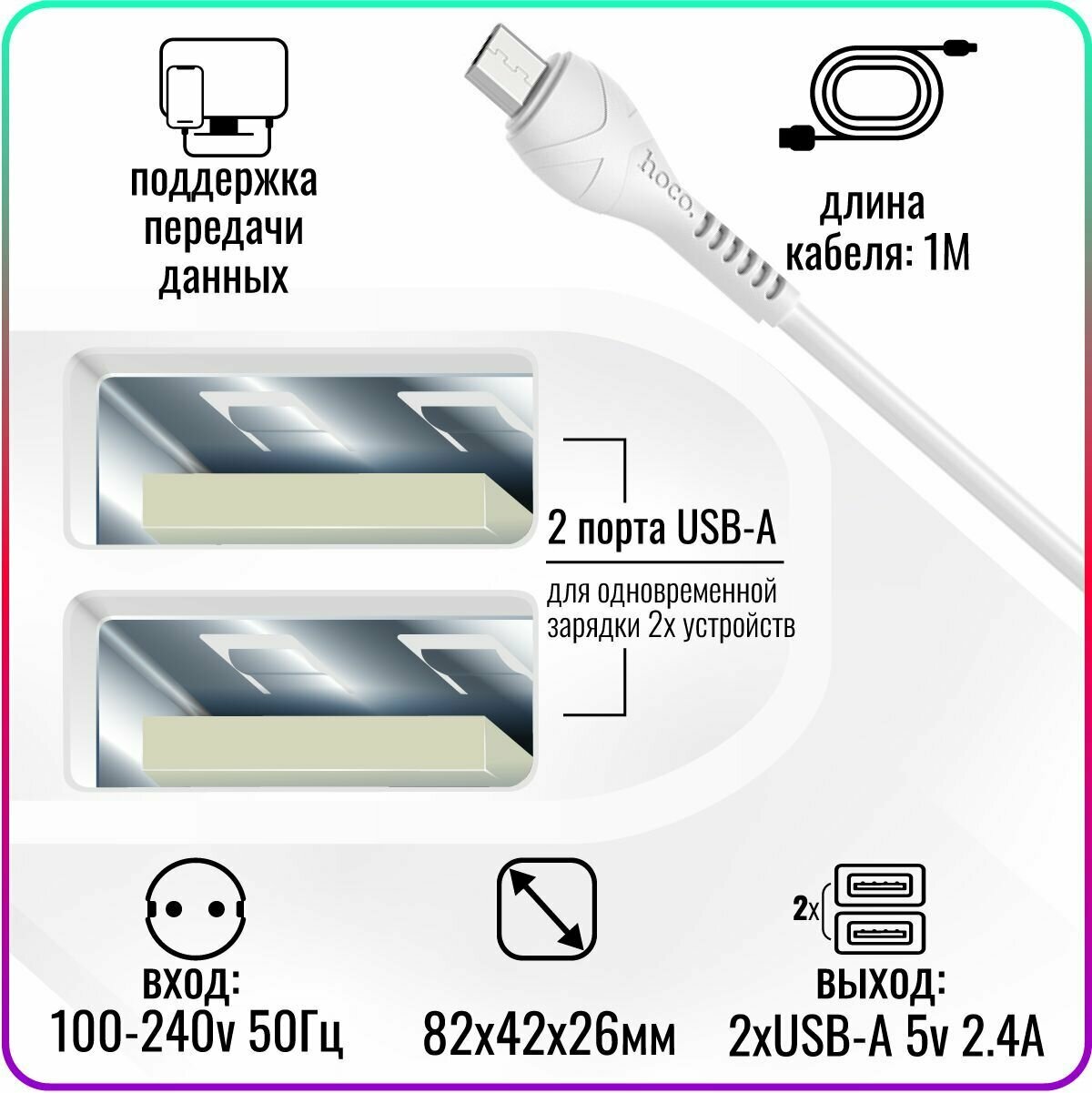 Адаптер СЗУ-2USB 2.4A Hoco C73A + MicroUSB 1м, бел