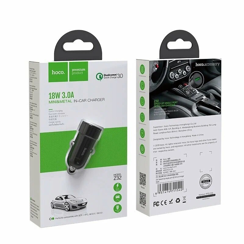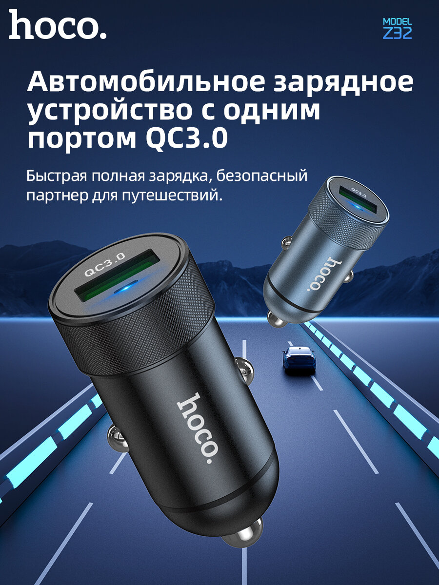 Автомобильное зарядное устройство HOCO Z32 USB QC3.0 3A черное интересное: