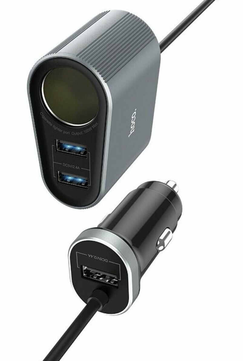 Автомобильная зарядка HOCO Z35A Companheiro, USB + разветвитель 2*USB+прикуриватель, 2.4A, 100 Вт, серый мет