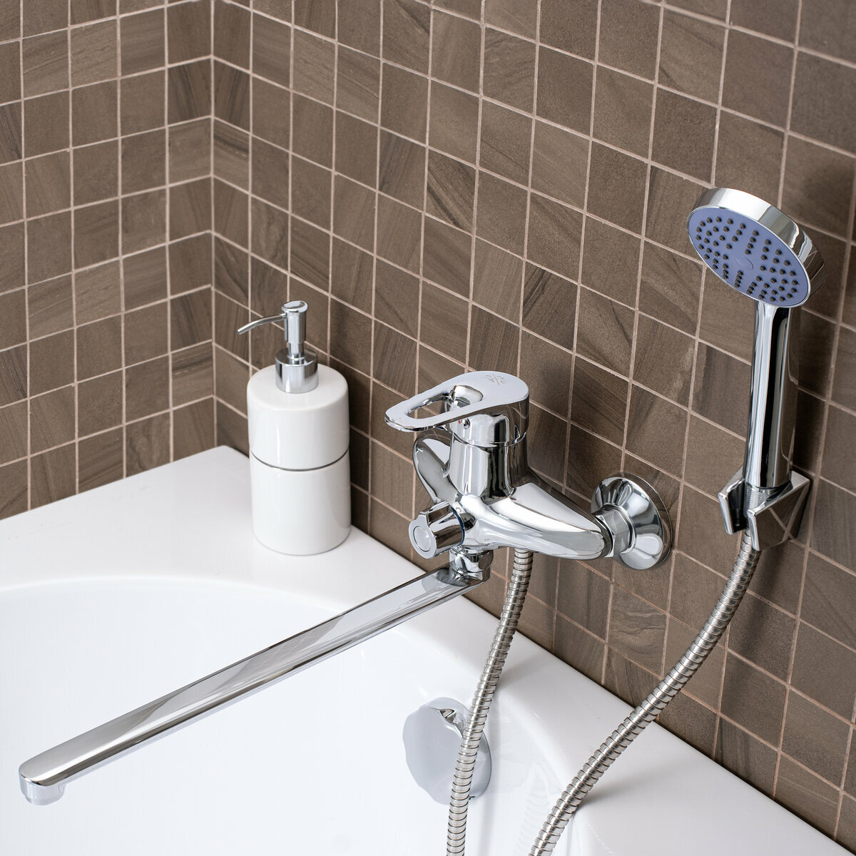 Купить Смеситель для ванны, РМС SL52-006E-3, с лейкой и шлангом, длинный излив.