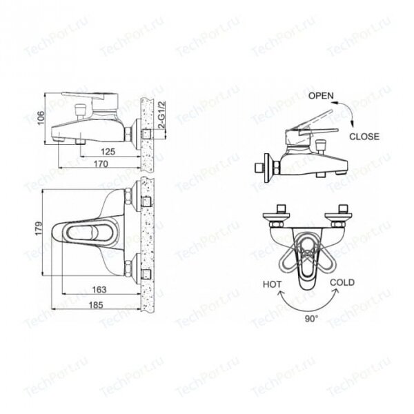 смеситель Bravat Смеситель Bravat Loop F6124182CP-01 для ванны с душем