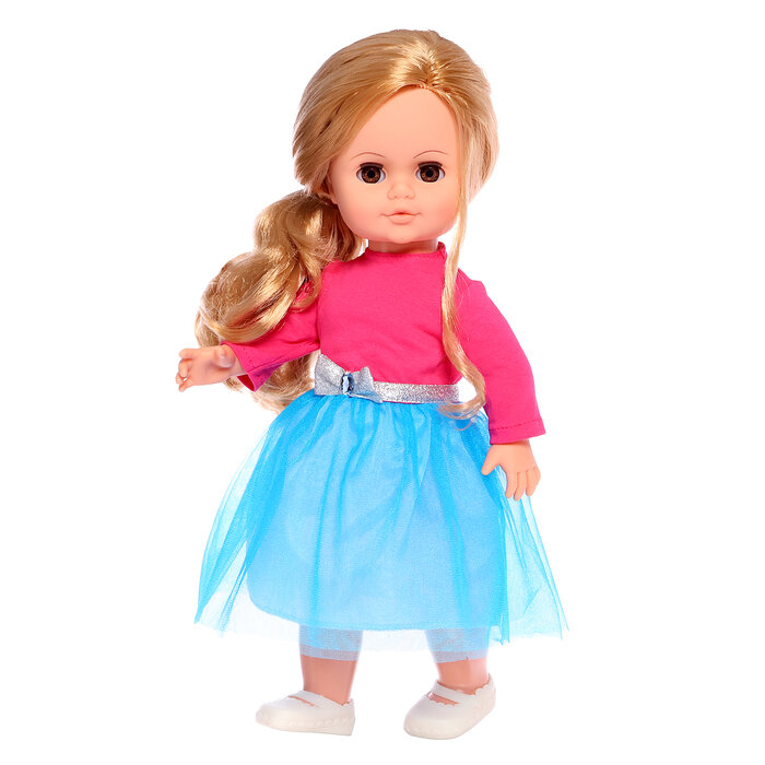 | Дополнительная информация | кукла одета в отрезное платье с длинным рукавом, верх из трикотажа, пышная юбка из органзы. По линии талии отделка лентой с бантом, на ножках - туфельки-балетки |