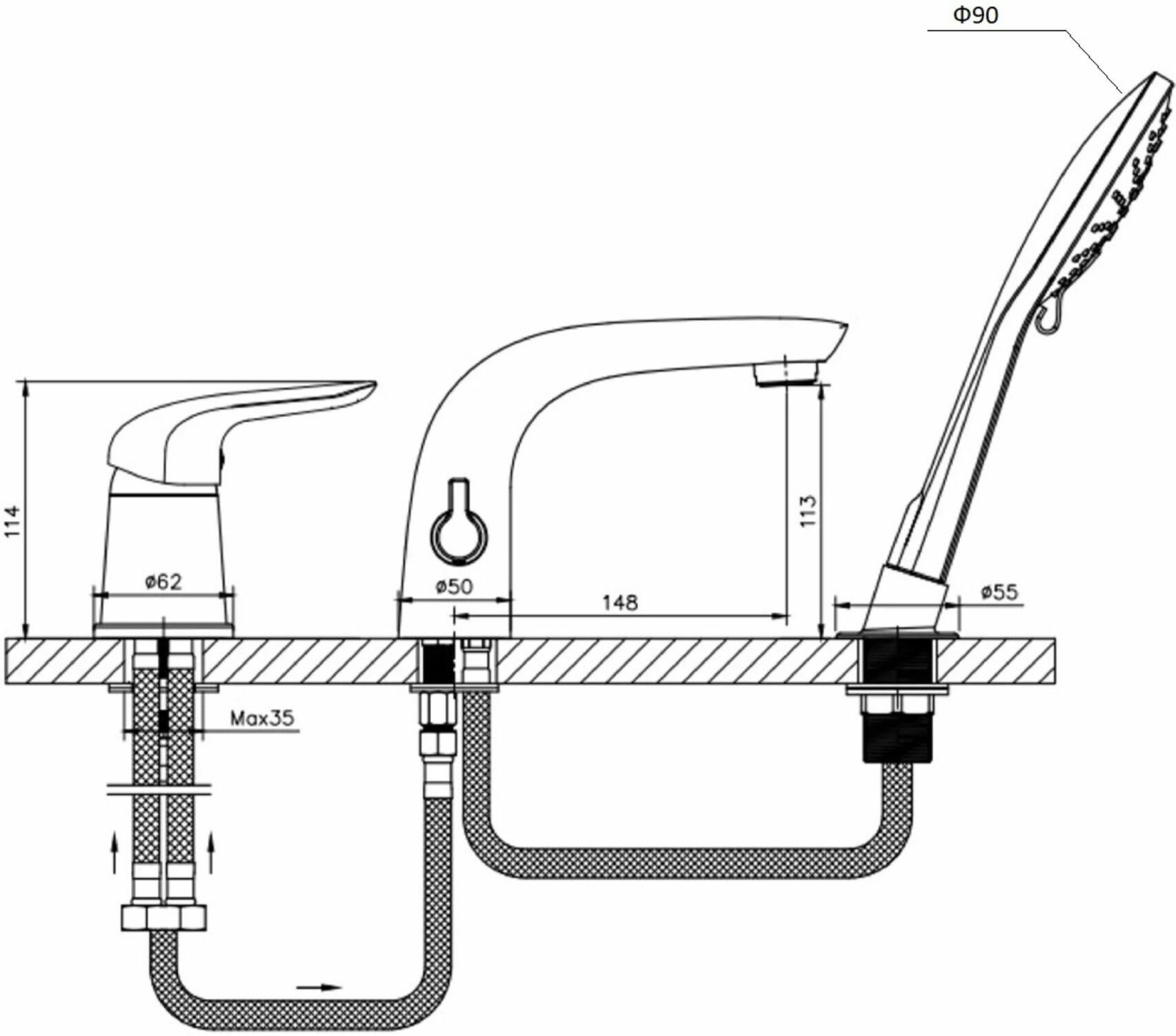 Смеситель на борт ванны Orange M60-333cr Хром латунь