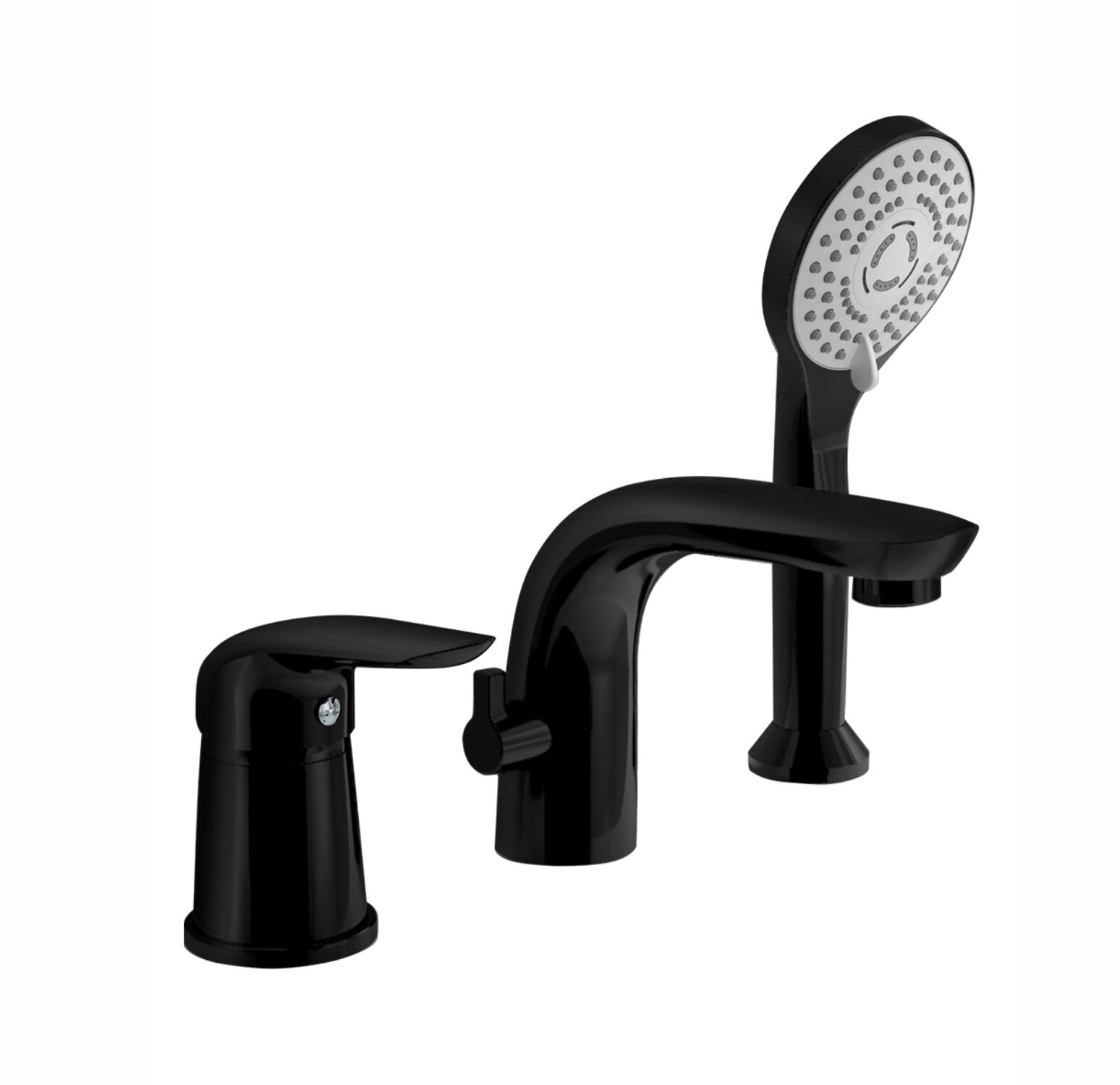 Смеситель на борт ванны с душем, черный Orange M60-333b
