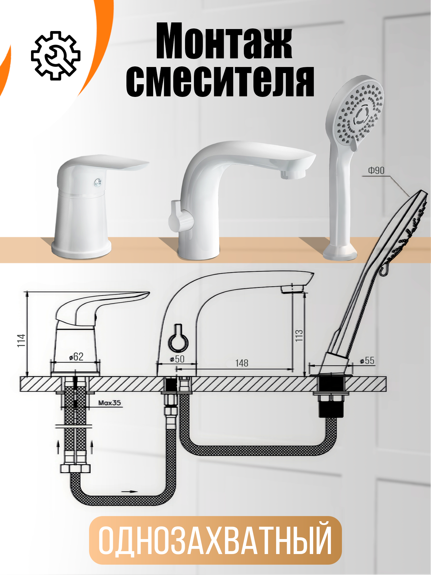 СохранитьСмеситель на борт ванны с душем, белый Orange M60-333w интересное: