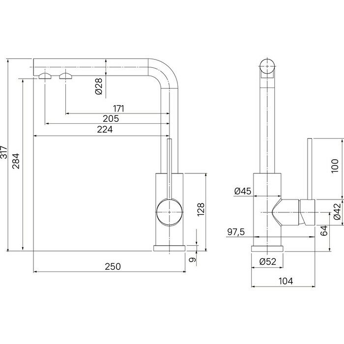 Смеситель для кухни 35к IDDIS RULSBLFi05 "Rule" с вых. для пит. фильтра выс. пов. излив, п/гайку хром
