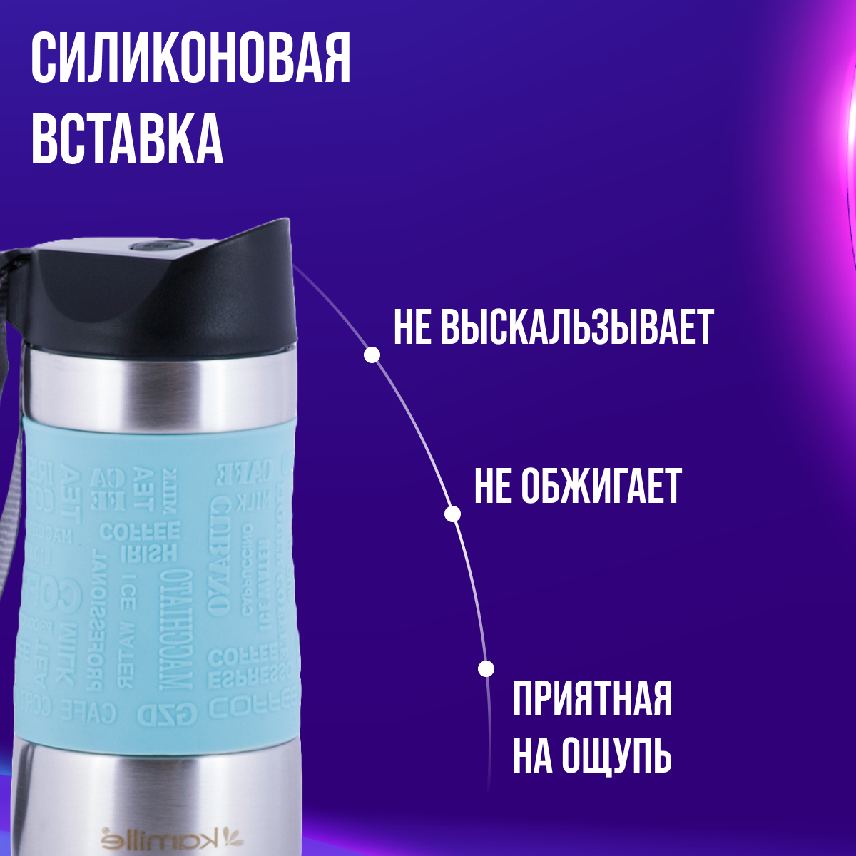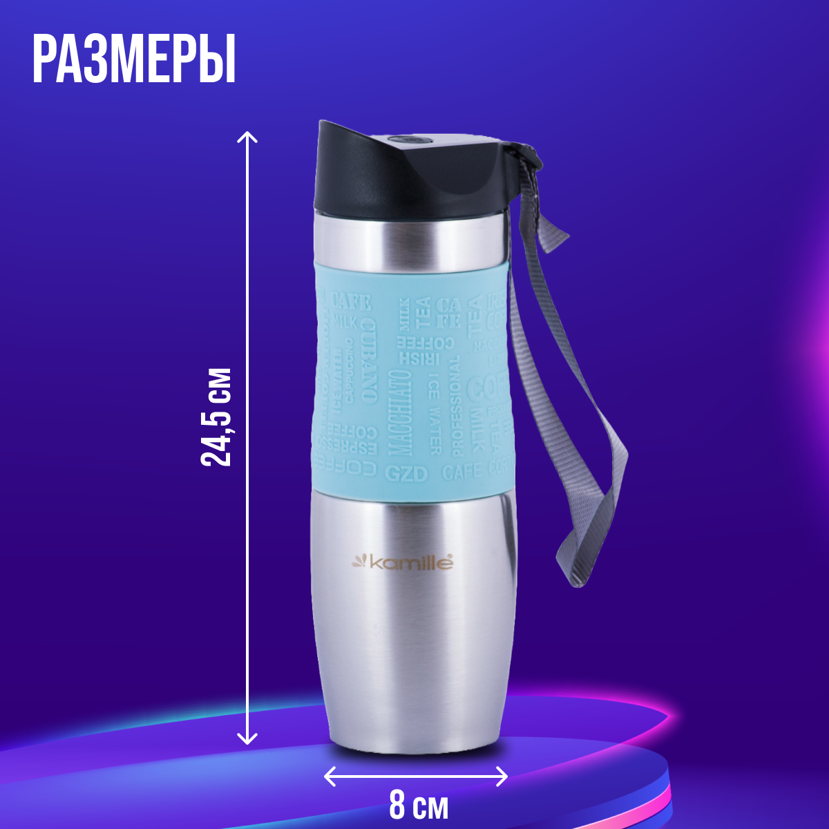 Термокружка 480мл из нержавеющей стали с TPR-вставкой и ремешком KAMILLE