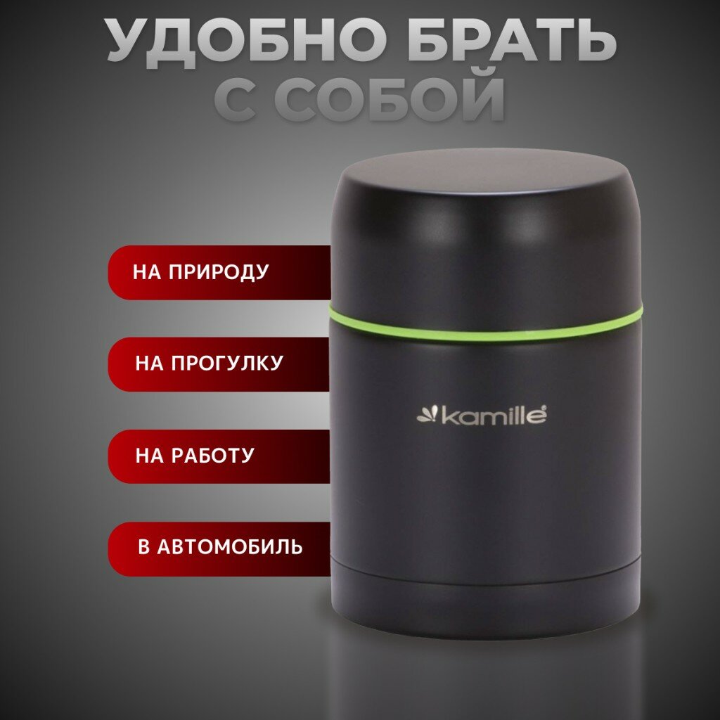 Термос для еды Kamille KM-2092, 0.5 л, черный