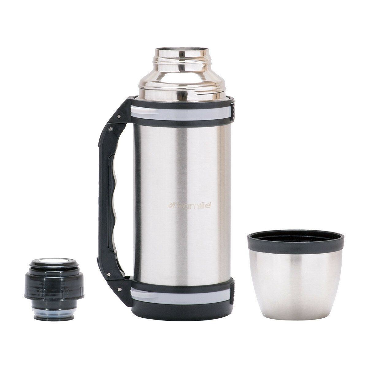 Термос Kamille 1500 мл из нержавеющей стали с ручкой и ремешком