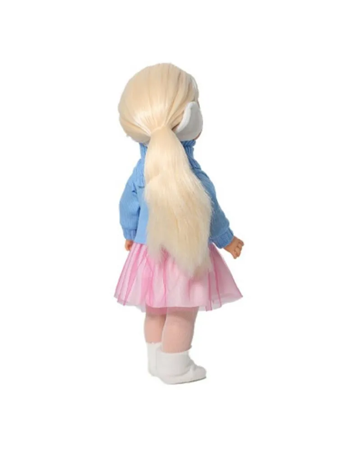 | Комплектация | кукла, свитер с воротником, двухслойная юбка, колготки, наушники из флиса с ободком,трусики, сапожки из флиса |
