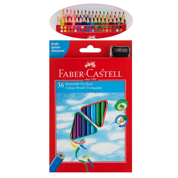 Карандаши цветные Faber-Castell 36цв., трехгран., заточен., картон, европодвес, с точилкой