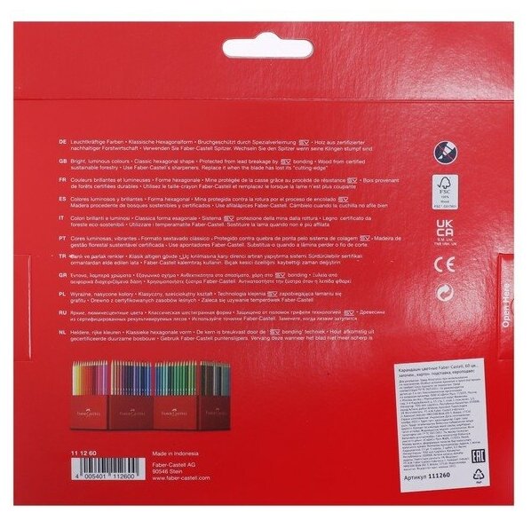 Карандаши цветные Faber-Castell 60 цветов, заточенные, картонная подставка, европодвес (111260)