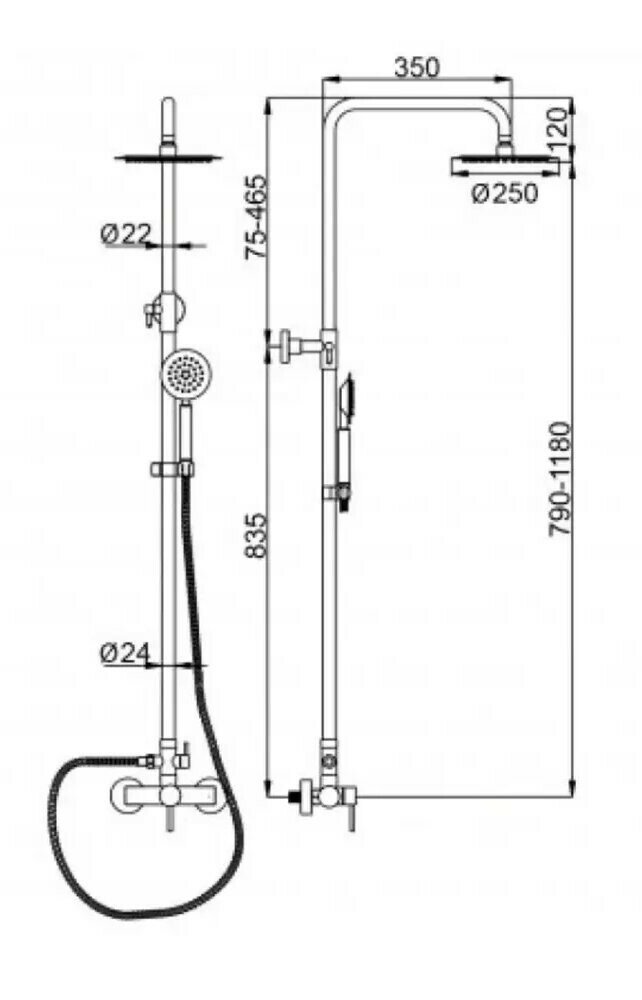 Смеситель Solone EZA16-A090 для душа с регулируемой высотой штанги и верхней лейкой
