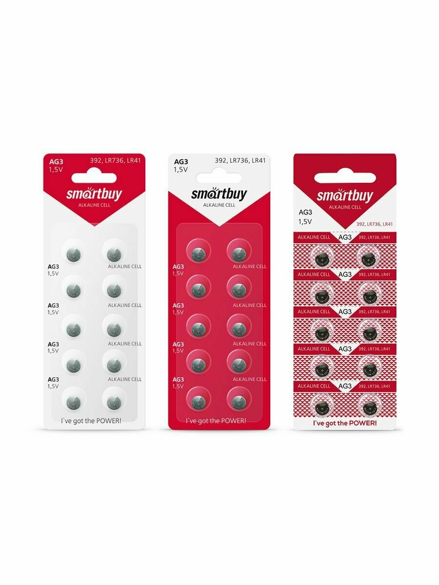 Батарейка AG 3 (LR41, 384, 392) 1.5V SmartBuy blister 10 шт.