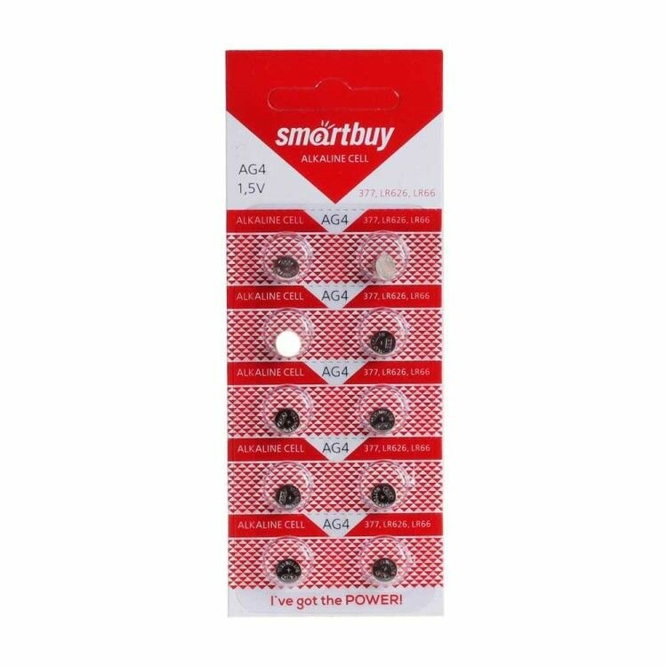 Батарейка LR66 (AG4, 377, 626) 1.5V SmartBuy Blister, упаковка 10 шт.