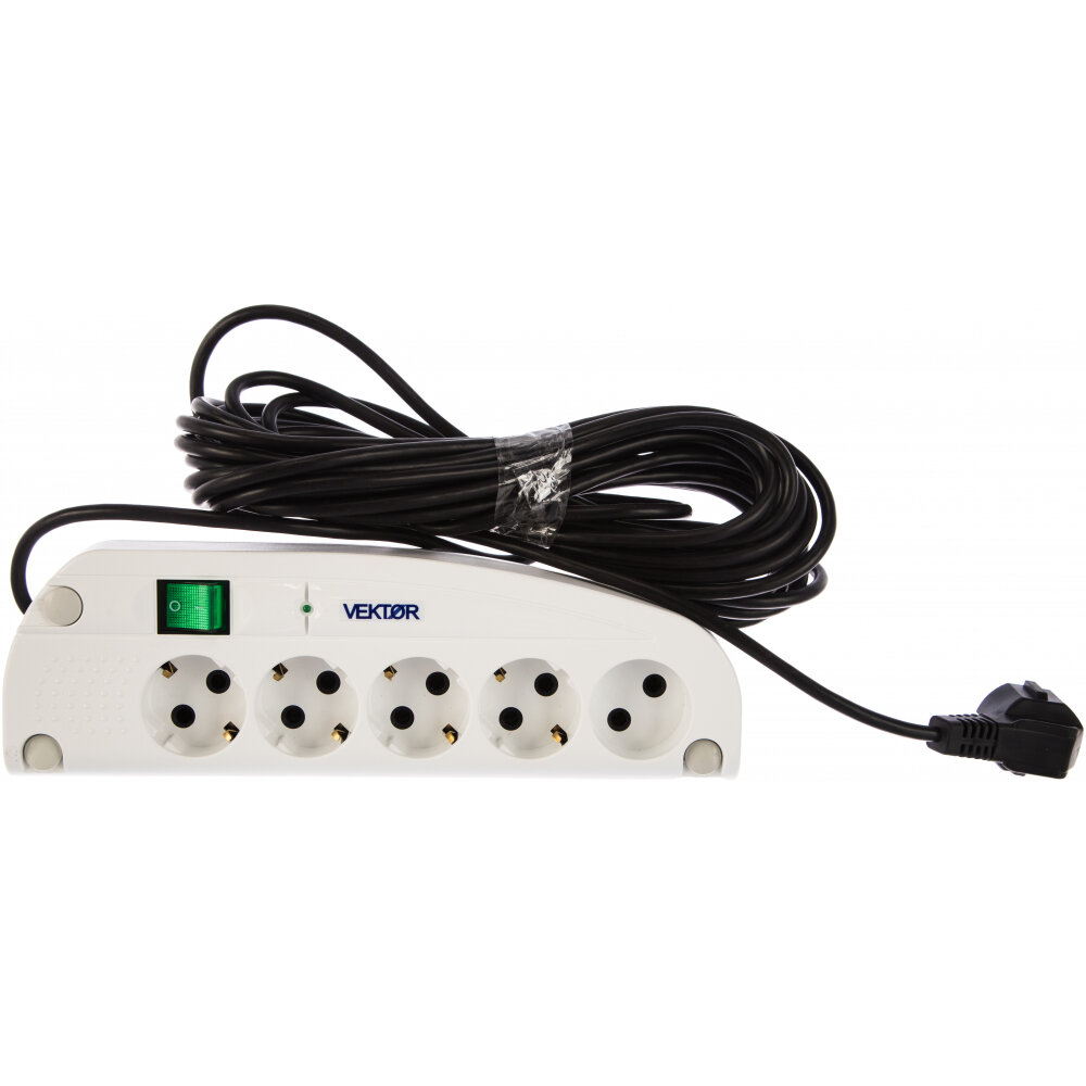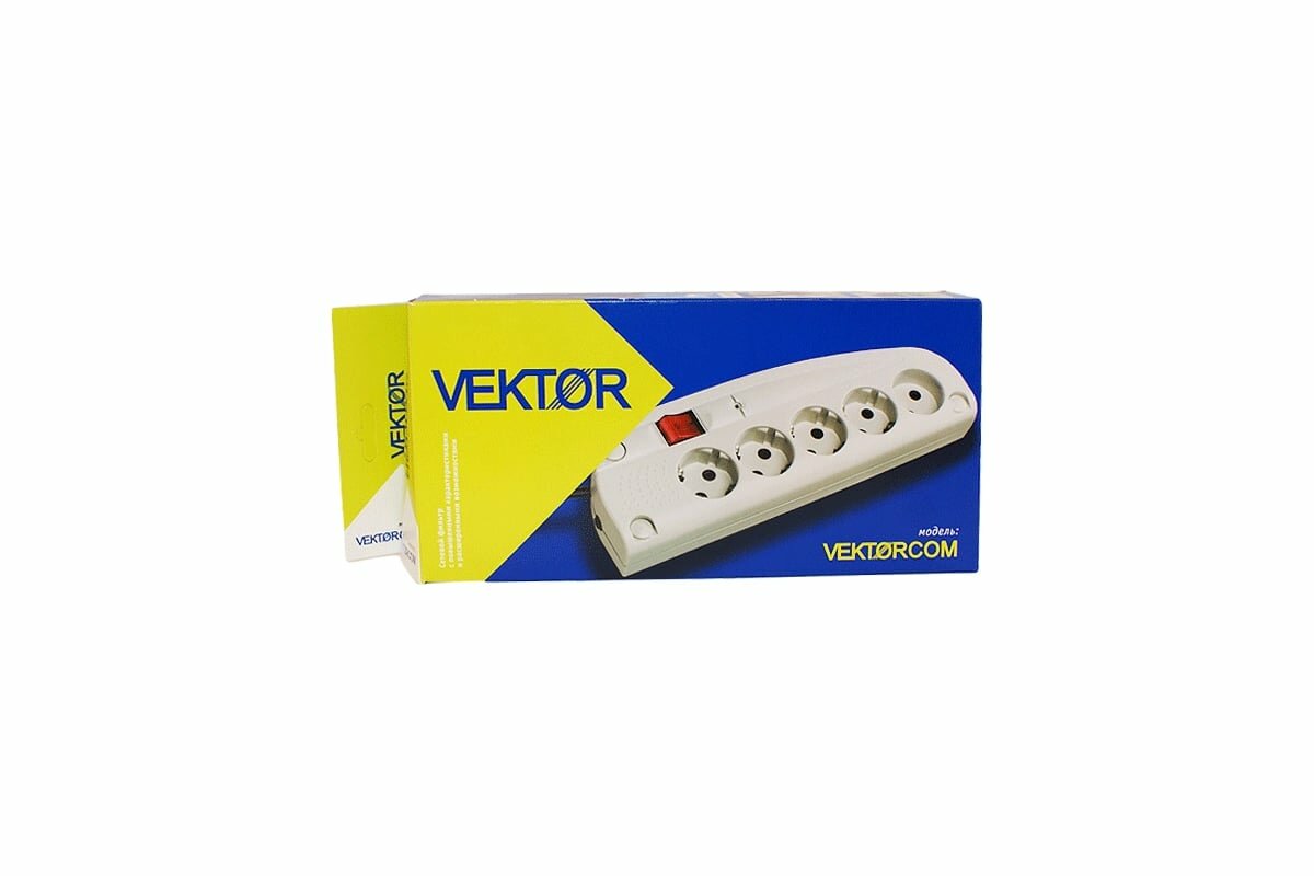 Сетевой фильтр Vektor COM, 5 розеток, белый 10 м, компьютерный