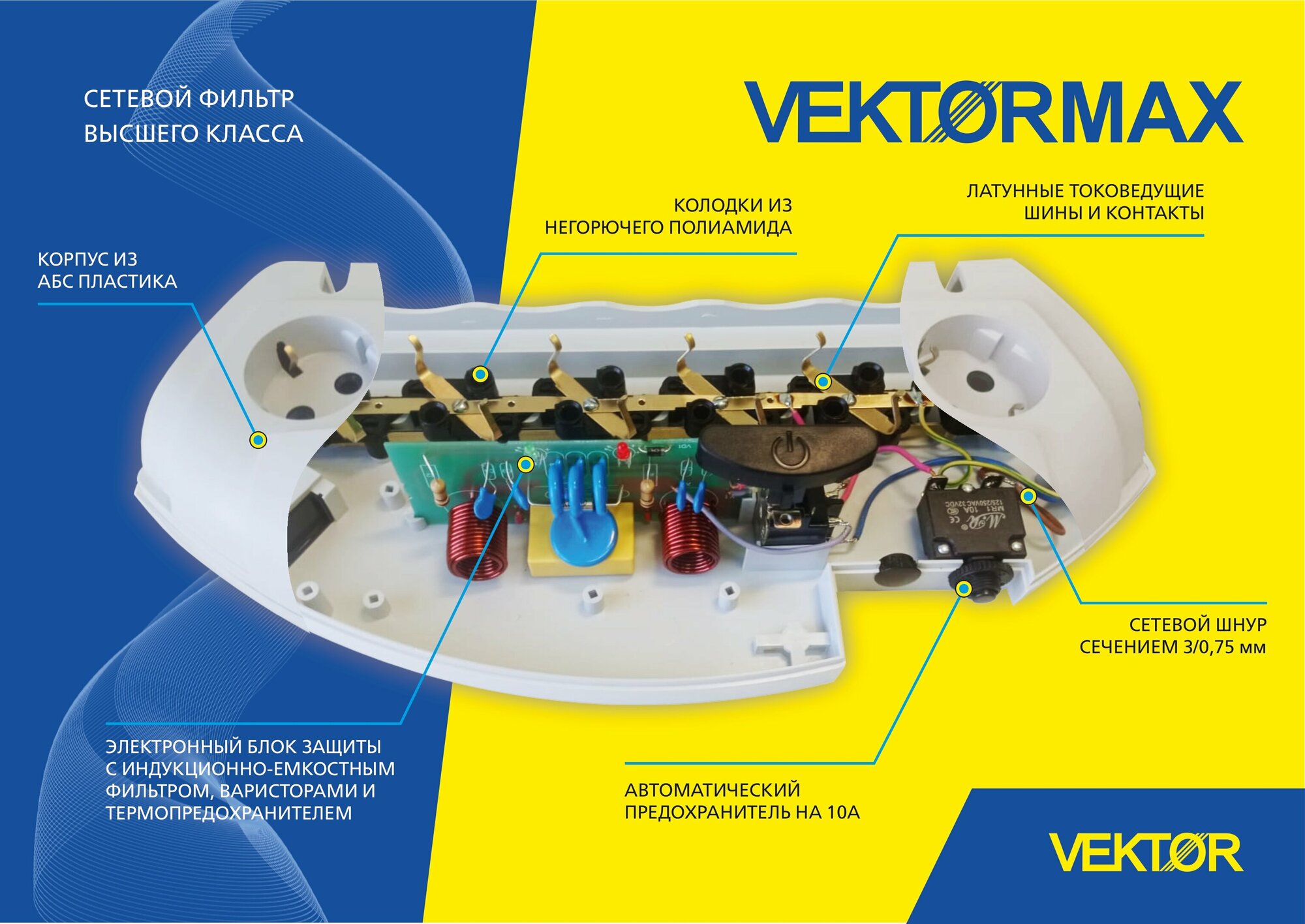 Сетевой фильтр 6/3м Vektor-Max (max-10A)