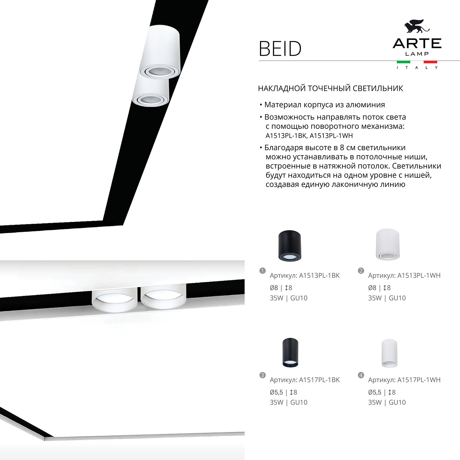 Ниже Вы можете прочитать отзывы на Точечный накладной светильник Arte Lamp BEID A1517PL-1BK, ознакомится с подробными характеристиками, посмотреть интересные обзоры и фотографии на Точечный накладной светильник Arte Lamp BEID A1517PL-1BK.