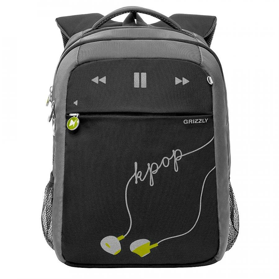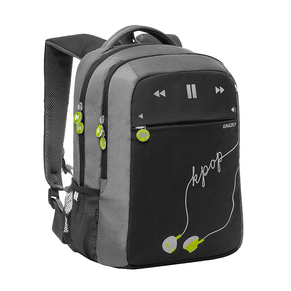 Школьный рюкзак GRIZZLY RB-354-4 черный-салатовый, 28х39х19