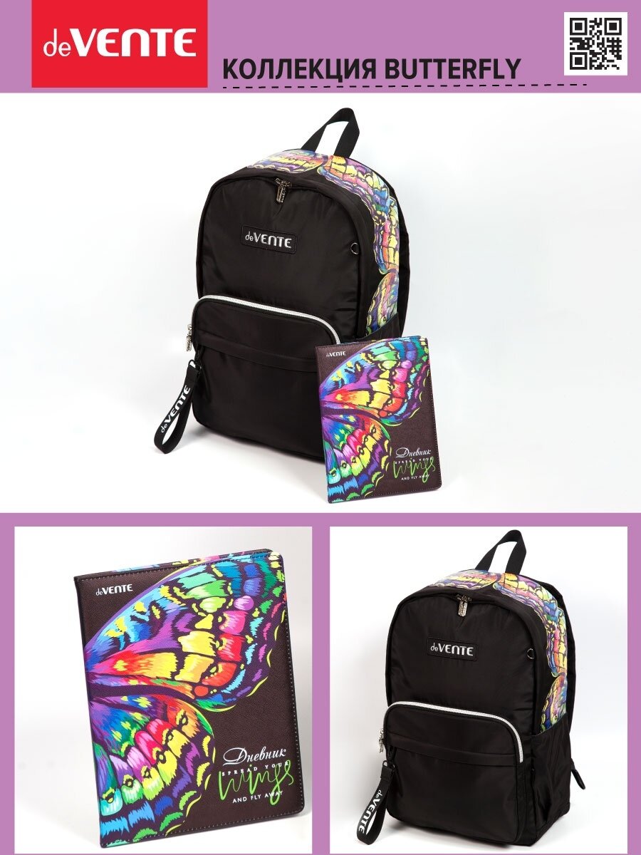 Рюкзак подростковый deVENTE. Butterfly 42*31*20 см 1отд. перед.карм. черный 7032252