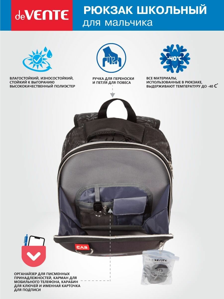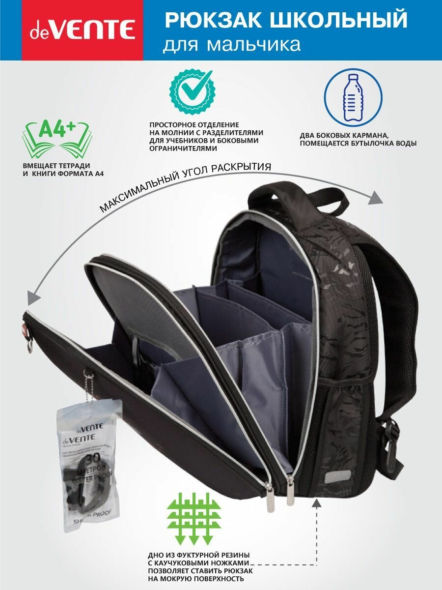 Рюкзак школьный для мальчиков ранец портфель сумка deVENTE. Black 40*29*17 см спортивный