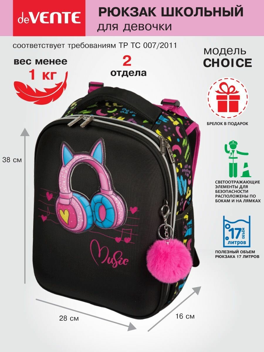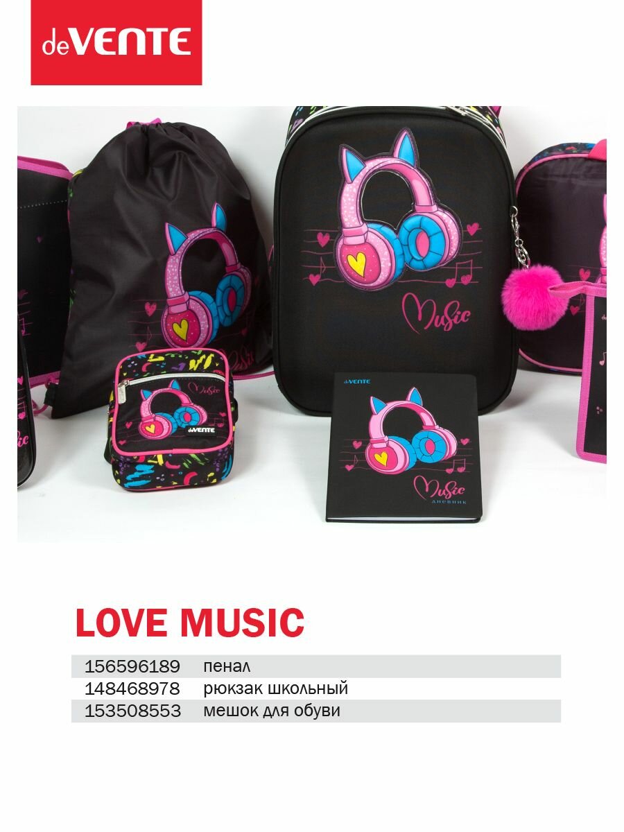 Ранец школьный deVENTE. Choice. Love Music, 38*28*16 см 2 отд, с брелоком 7033329