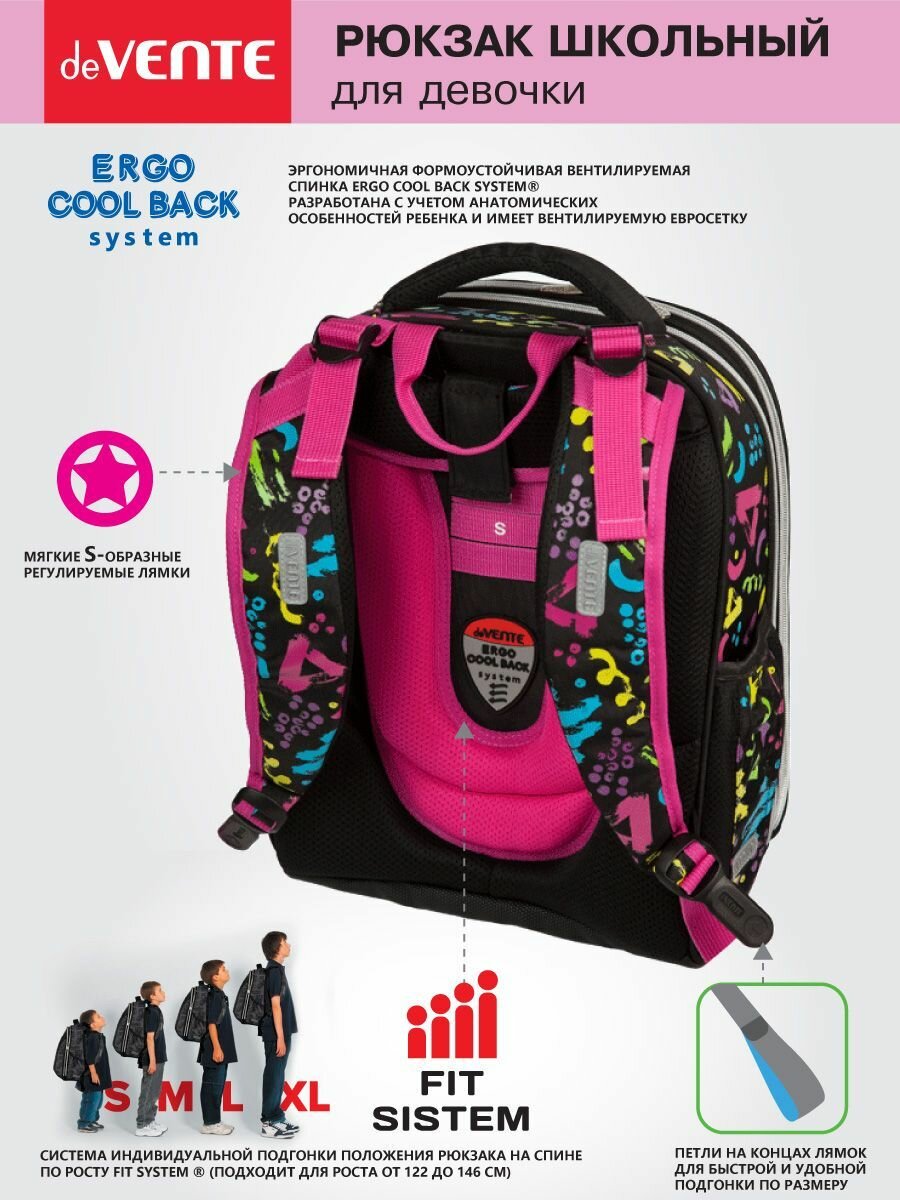 Рюкзак deVENTE "Red Label", DJ Girl, подростковый, 39х30х17 см, 19 л, эргономичная вентилируемая спинка, 750 г
