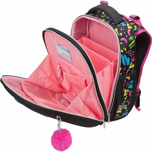 Ранец школьный GRIZZLY RAz-386-7 /1 черный - розовый