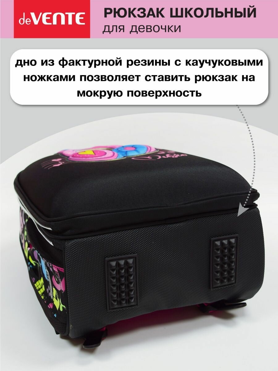 Рюкзак школьный для девочек ранец портфель сумка deVENTE. Funny Cats 40*29*17 см 1отд. перед.карм. вышивка, черный