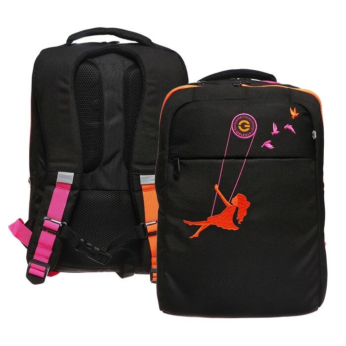 Рюкзак молодёжный 40 х 28 х 16 см, Grizzly, эргономичная спинка, отделение для ноутбука, чёрный