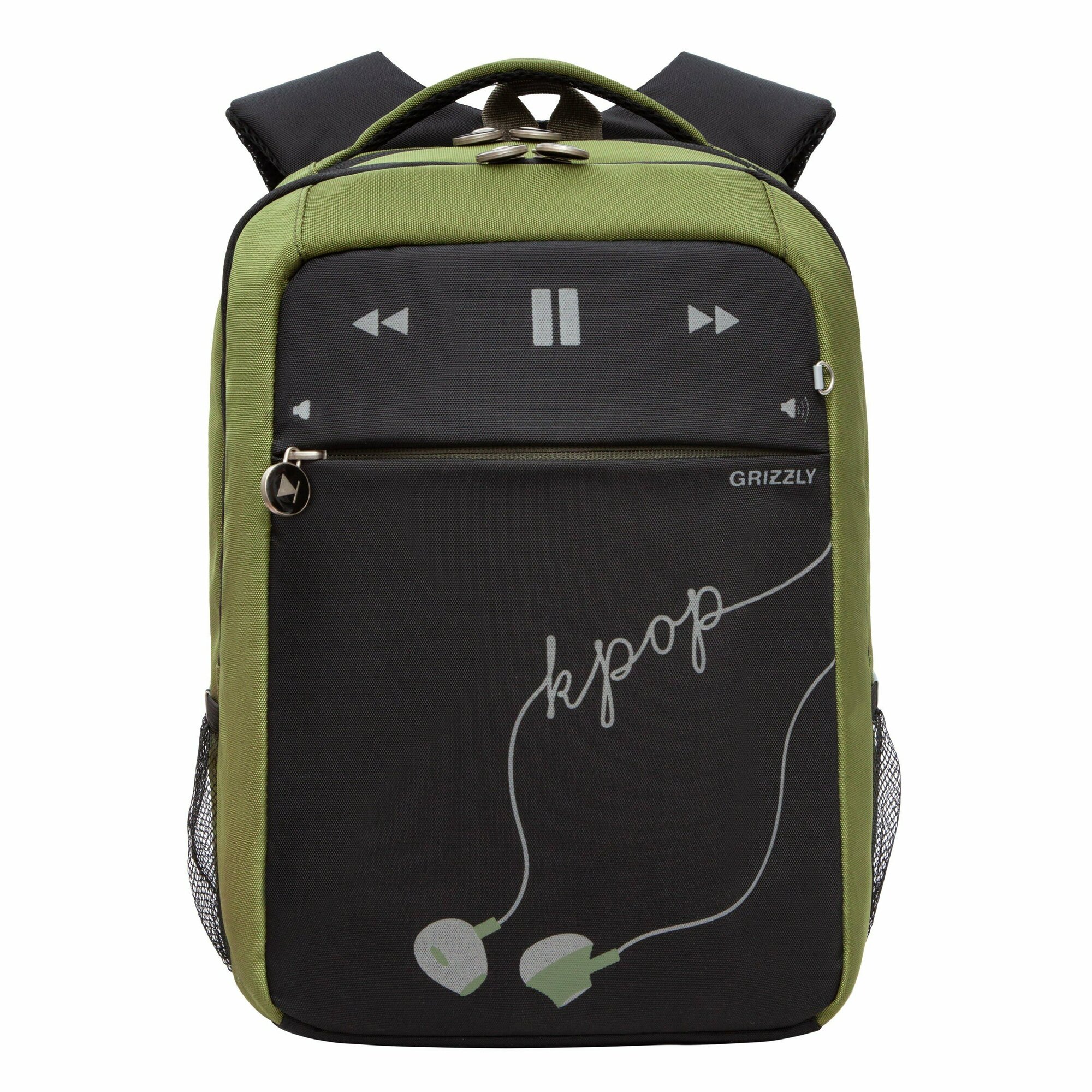 Рюкзак мужской/школьный/подростковый для учебы, спортивный, городской Grizzly RB-156-2 для школьников и студентов, черный-хаки