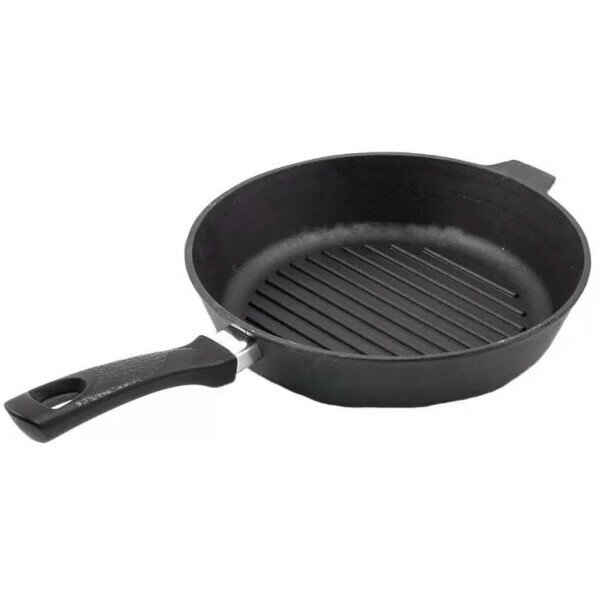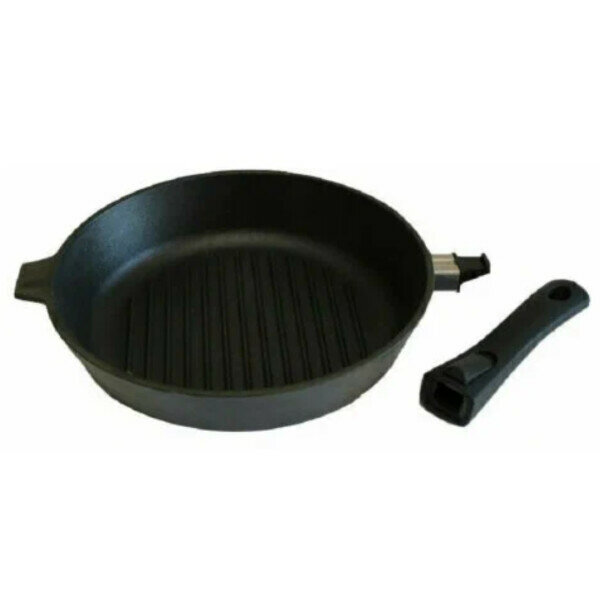 Сковорода гриль литая чугунная 280*60 со съемной бакелитовой ручкой гс8060 Камская посуда