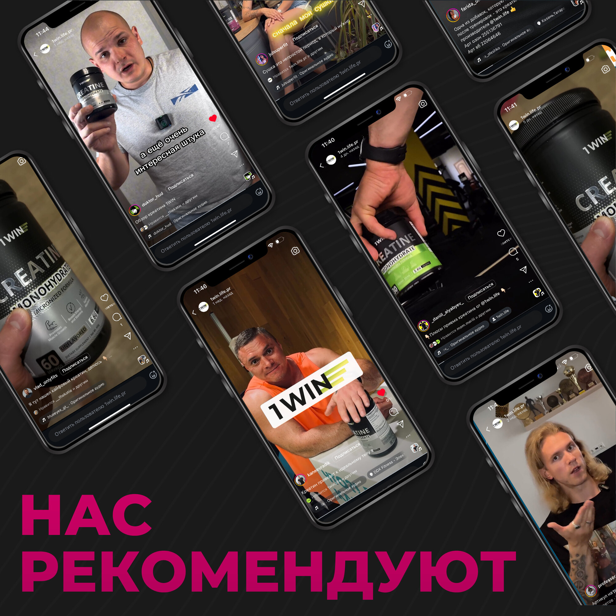 Креатин моногидрат порошок 1WIN, Creatine Monohydrate, Вкус Ягодный микс, 60 порций, спортивное питание для набора массы тела