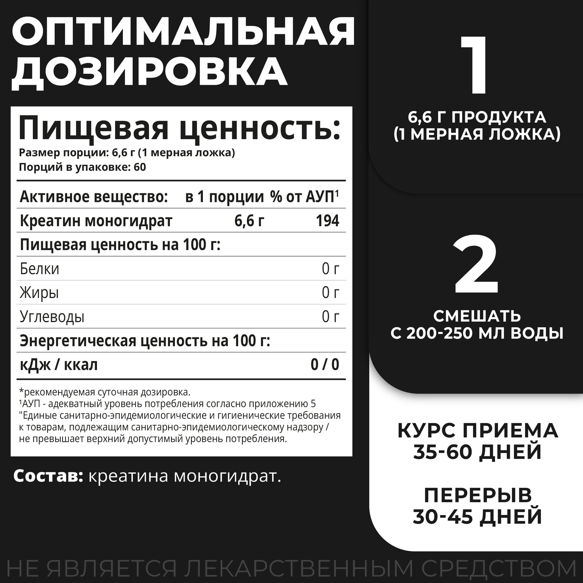 | Форма креатина | креатин моногидрат |
