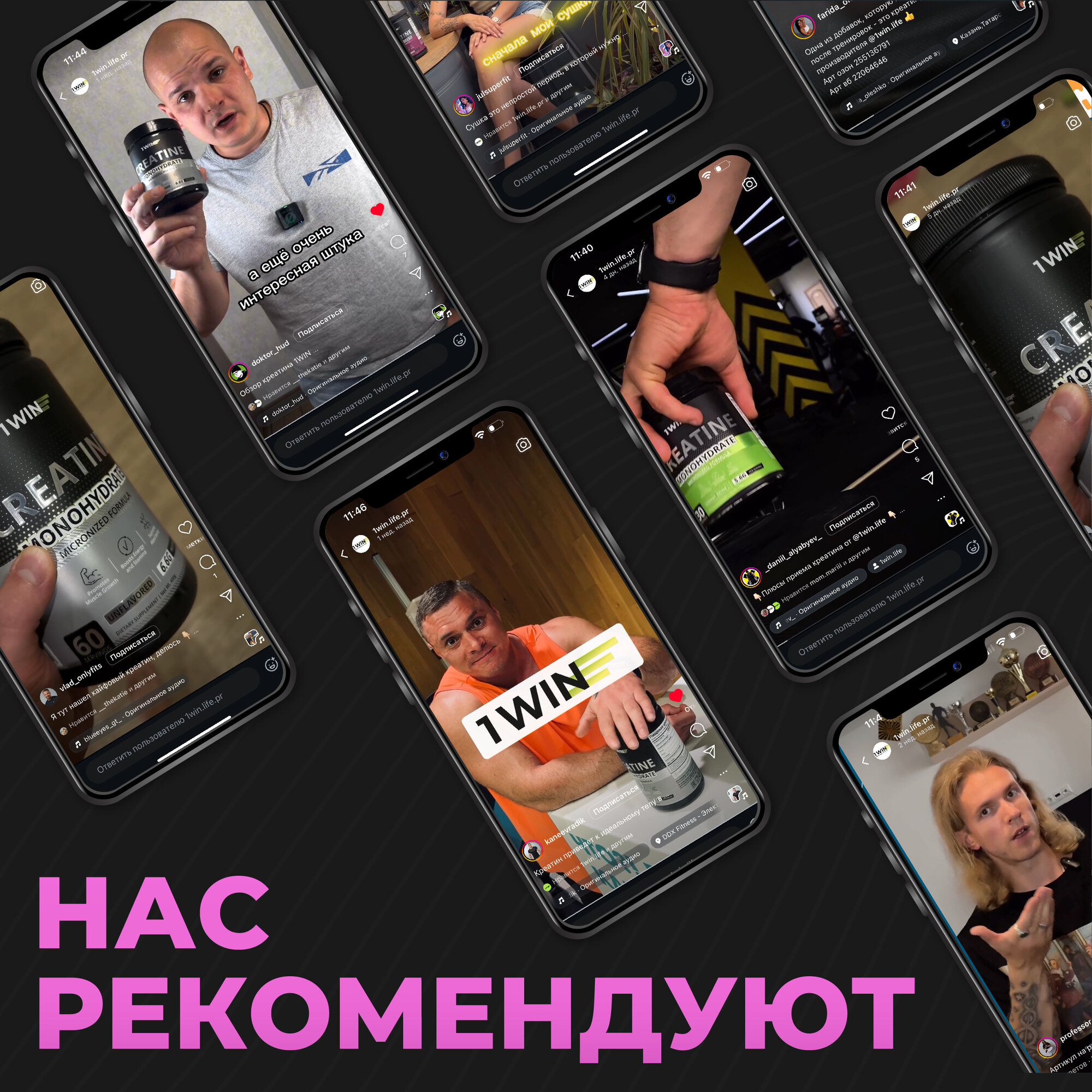 Креатин моногидрат порошок 1WIN, Creatine Monohydrate, Вкус Ягодный микс, 60 порций, спортивное питание для набора массы тела
