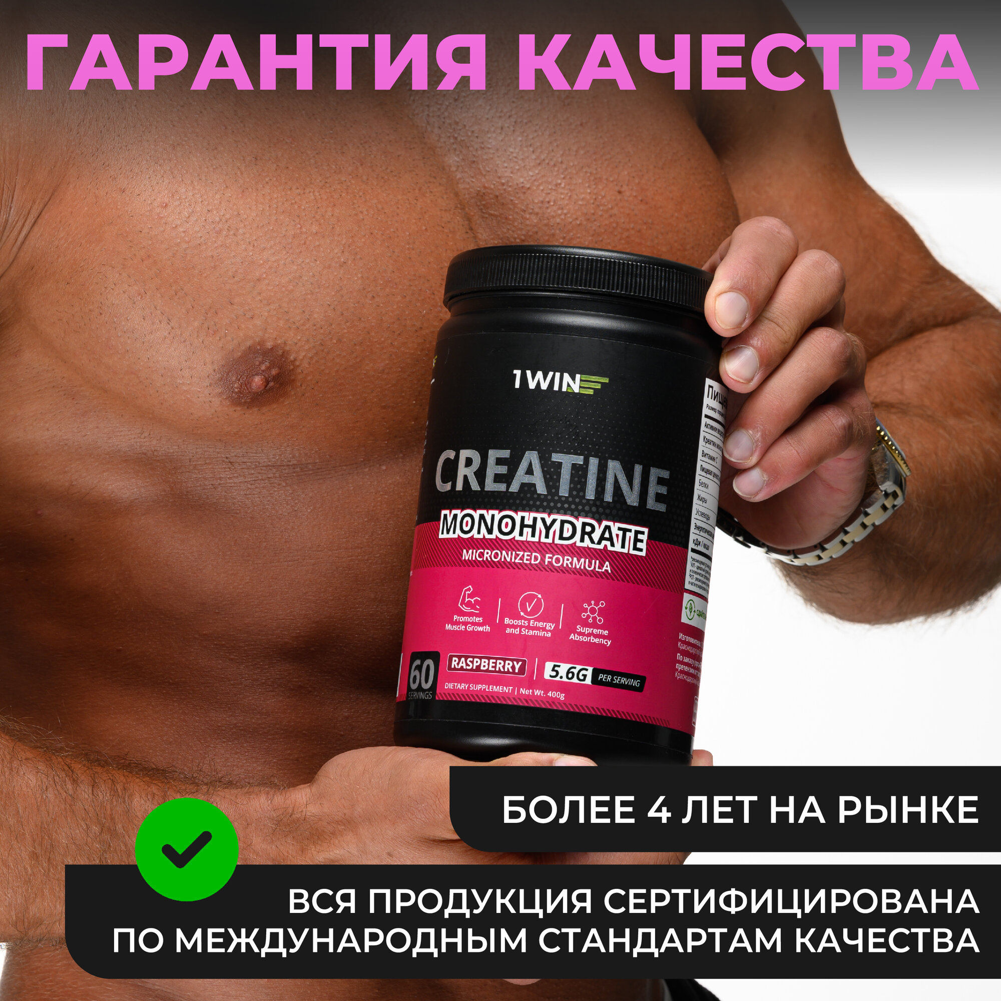 Креатин моногидрат порошок 1WIN, Creatine Monohydrate, Вкус Малина, 60 порций, спортивное питание для набора массы тела