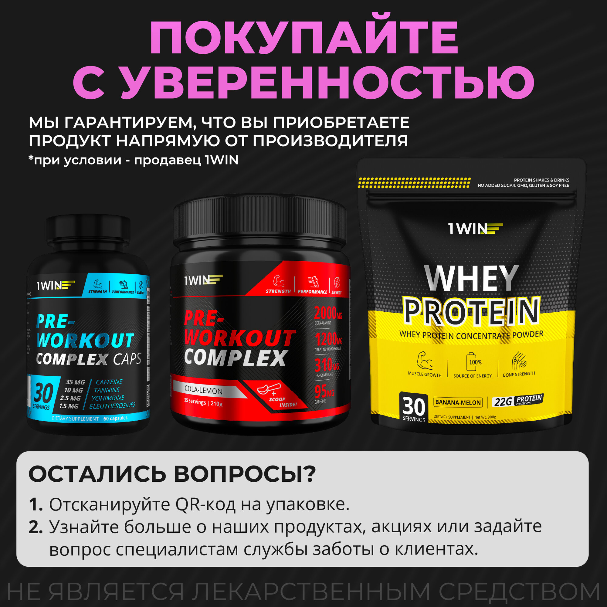 Креатин моногидрат порошок 1WIN, Creatine Monohydrate, Вкус Энергетик, 30 порций, спортивное питание для набора массы тела