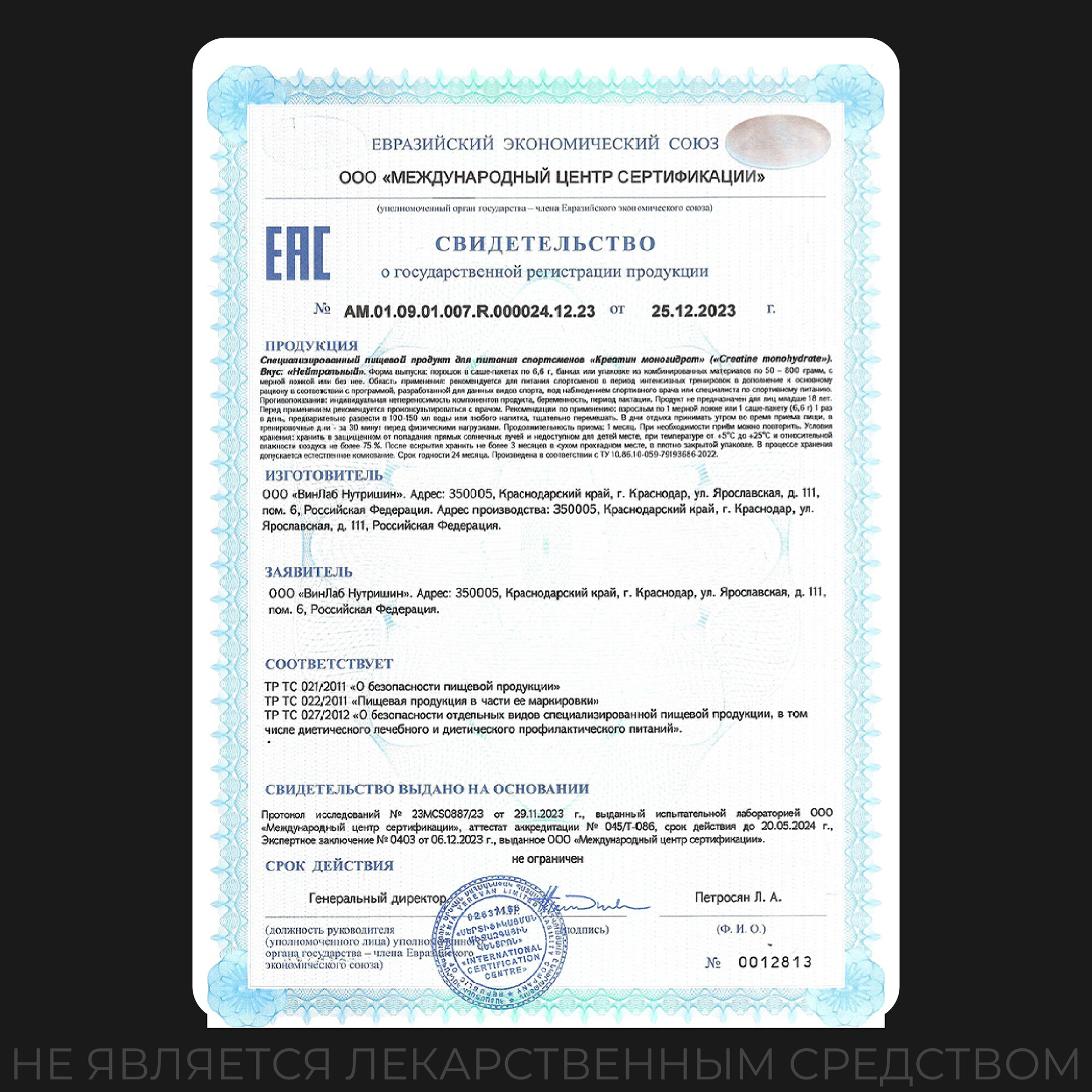 | Форма креатина | креатин моногидрат |