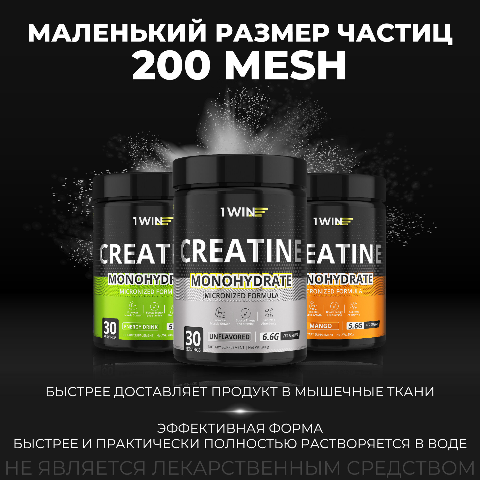 1WIN Креатин моногидрат, Creatine Monohydrate. Без вкуса, без добавок, 30 порций, спортивное питание