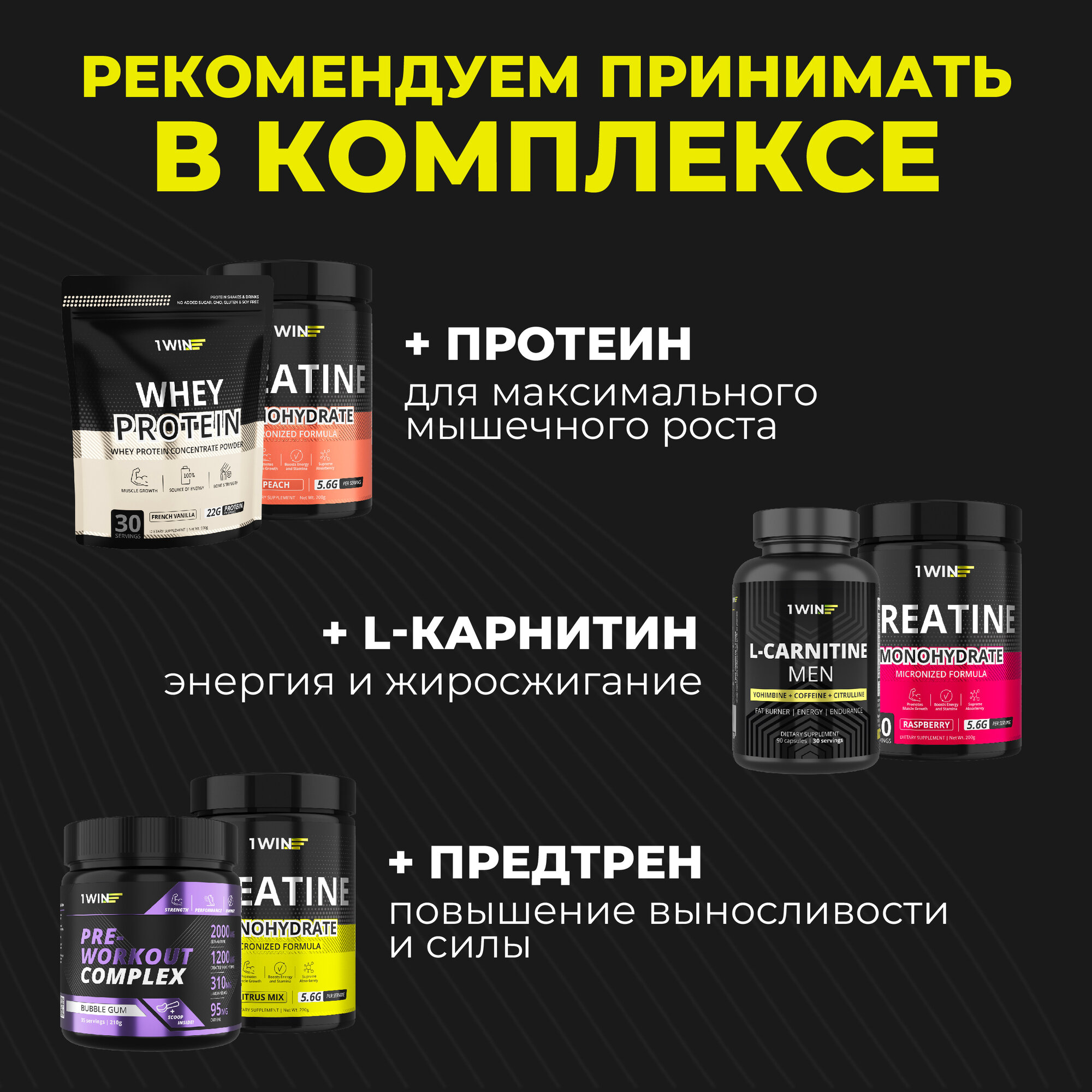 Креатин моногидрат порошок 1WIN, Creatine Monohydrate, Вкус Персик, 30 порций, спортивное питание для набора массы тела