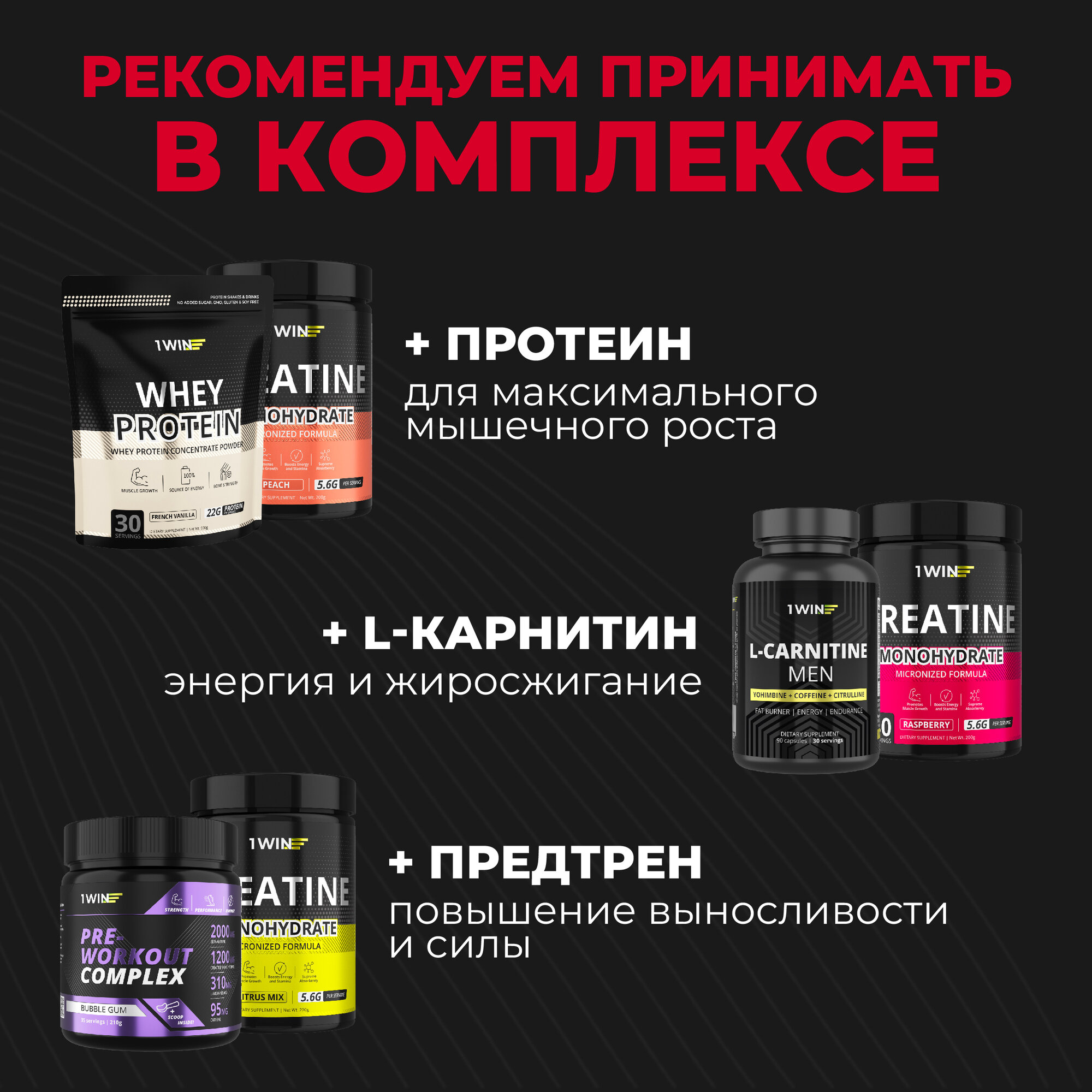 Креатин моногидрат порошок 1WIN, Creatine Monohydrate, Вкус Персик, 30 порций, спортивное питание для набора массы тела