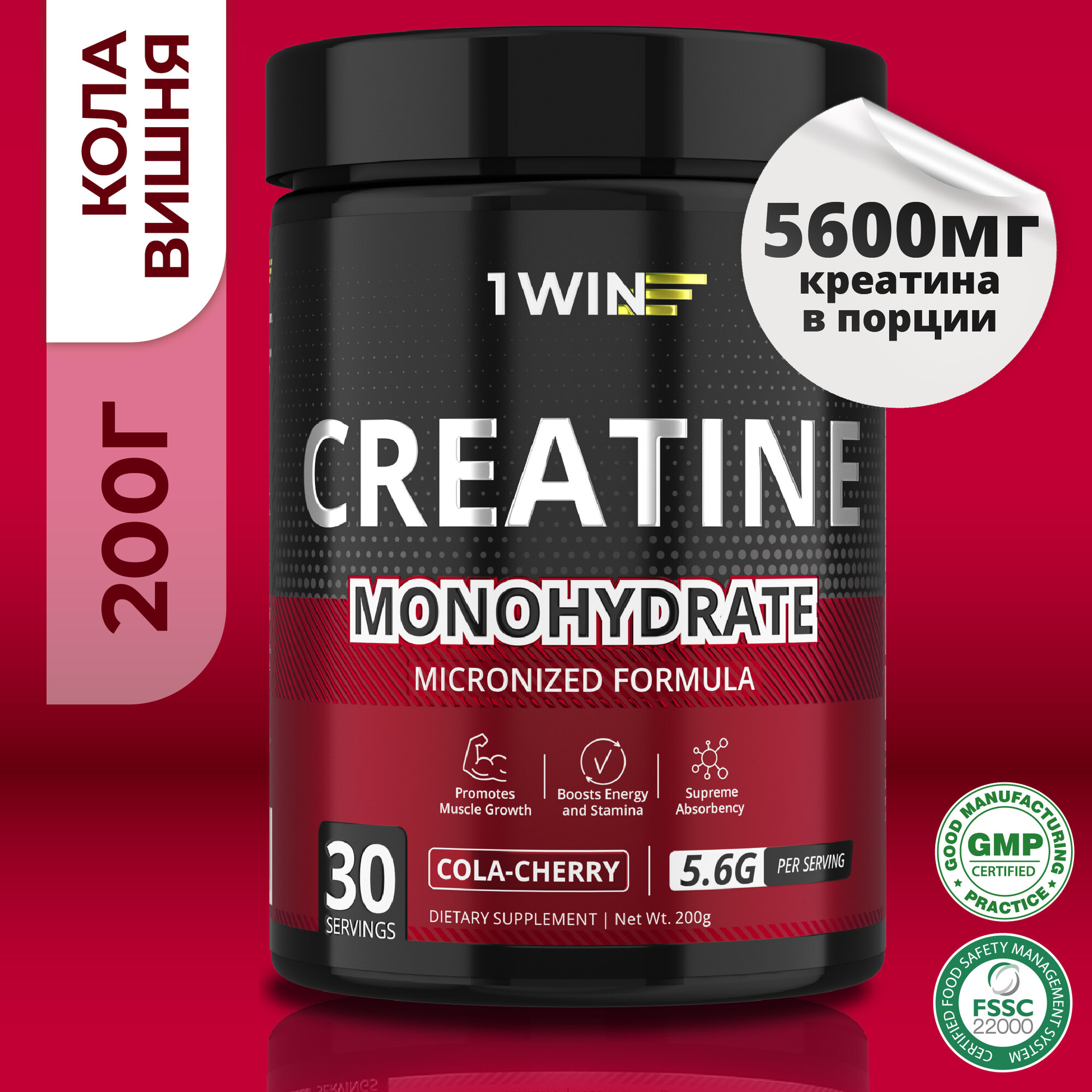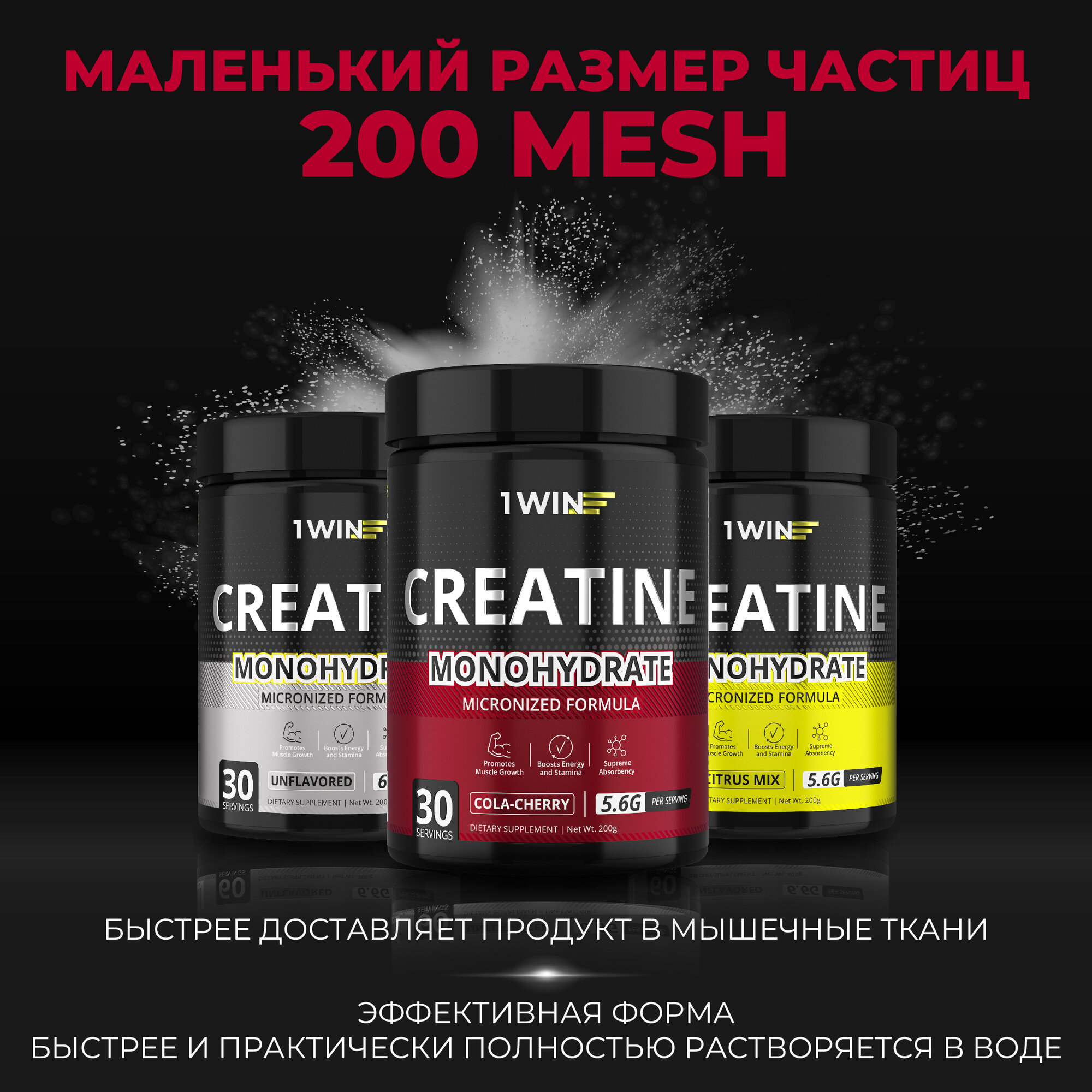 Креатин моногидрат порошок 1WIN, Creatine Monohydrate, Вкус Кола-Вишня, 30 порций, спортивное питание для набора массы тела