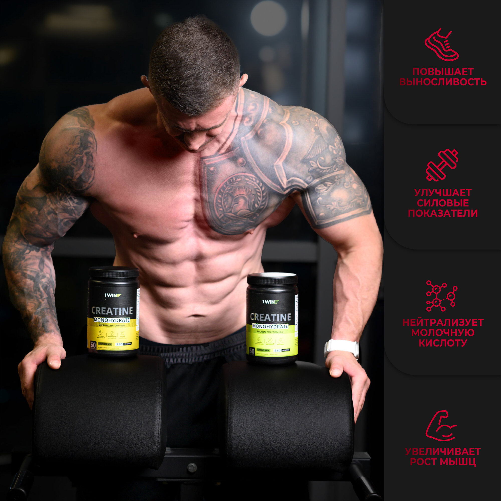 Креатин моногидрат порошок 1WIN, Creatine Monohydrate, Вкус Нейтральный, 60 порций, спортивное питание для набора массы тела