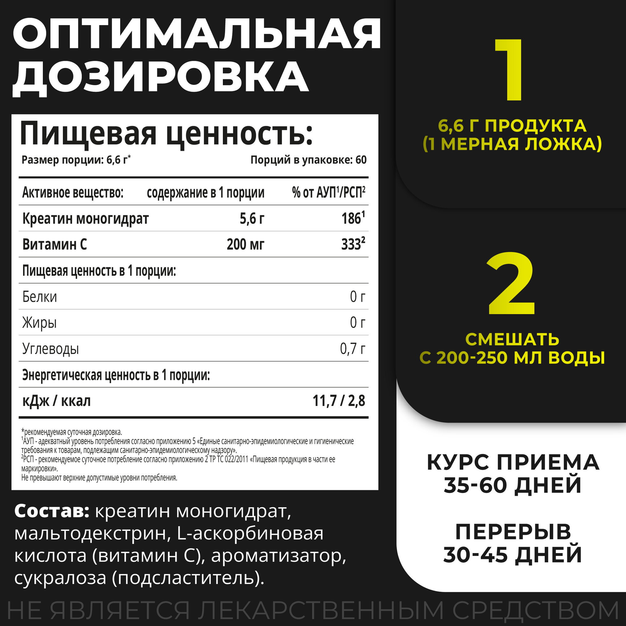 | Форма креатина | креатин моногидрат |