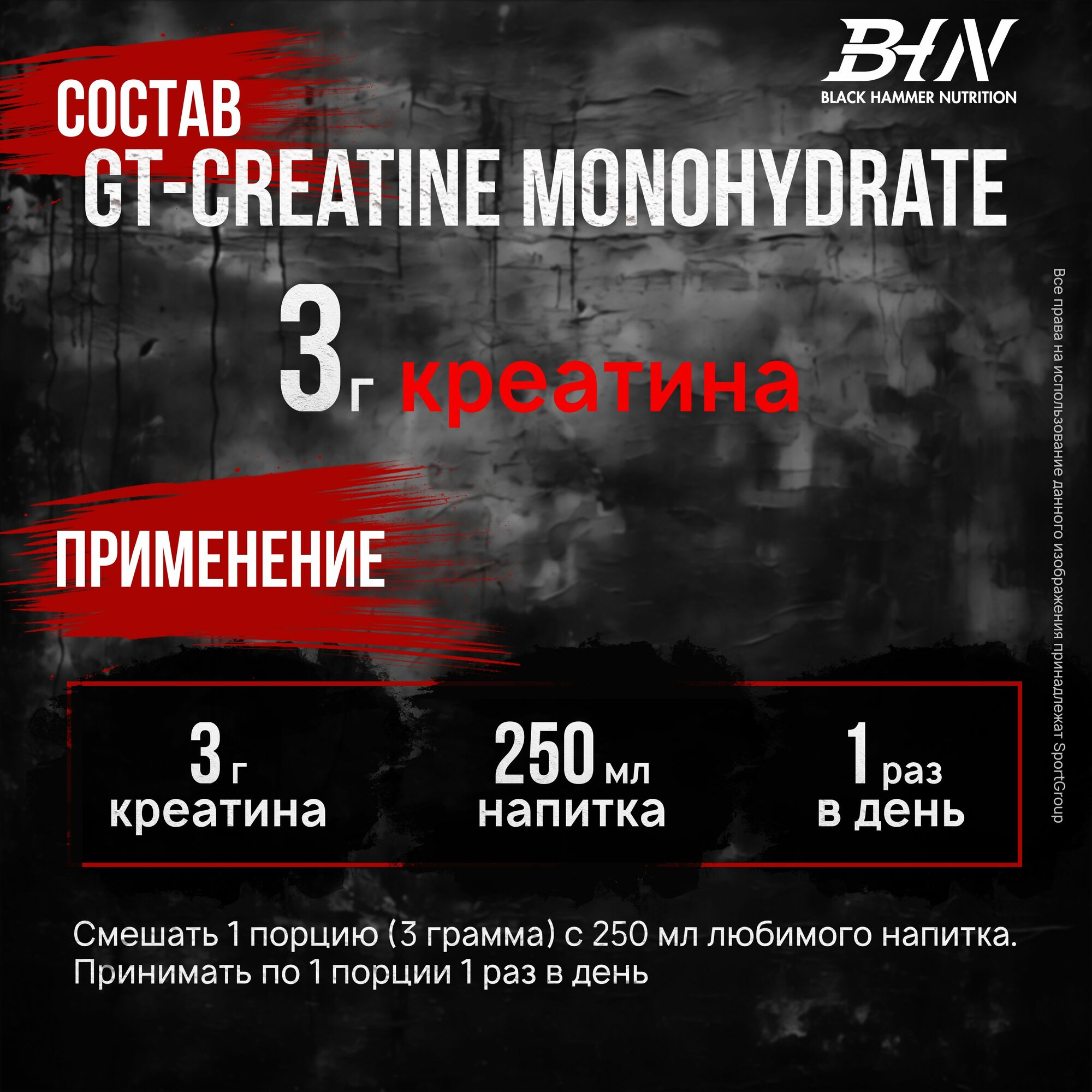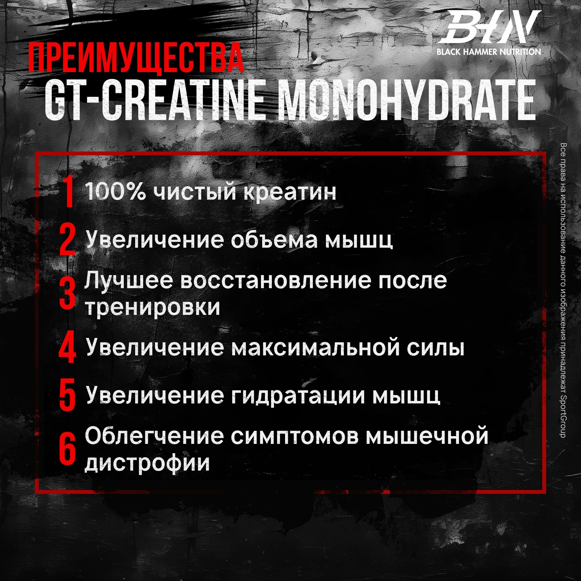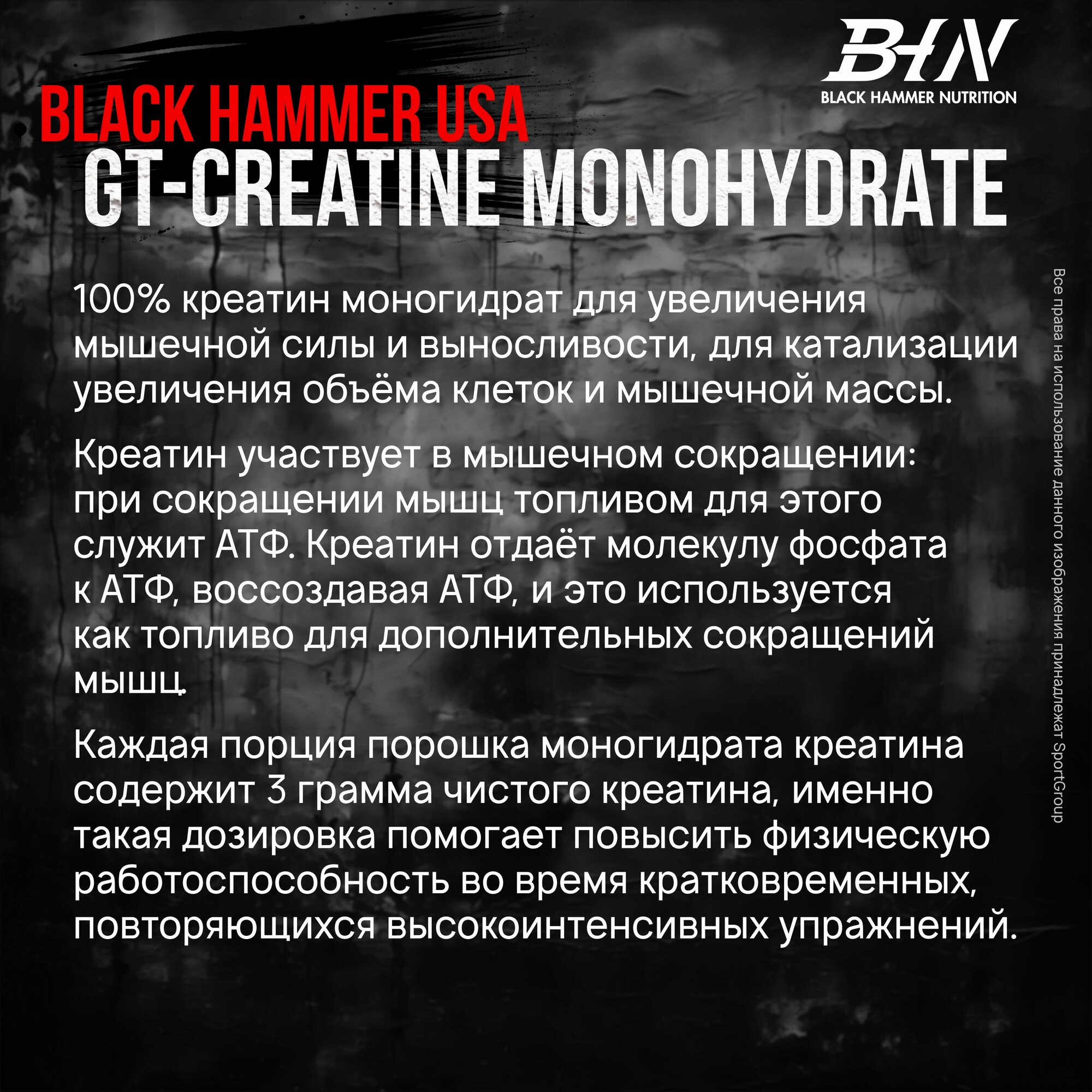 BLACK HAMMER USA GT-Creatine Monohydrate 350 г. Креатин моногидрат из США