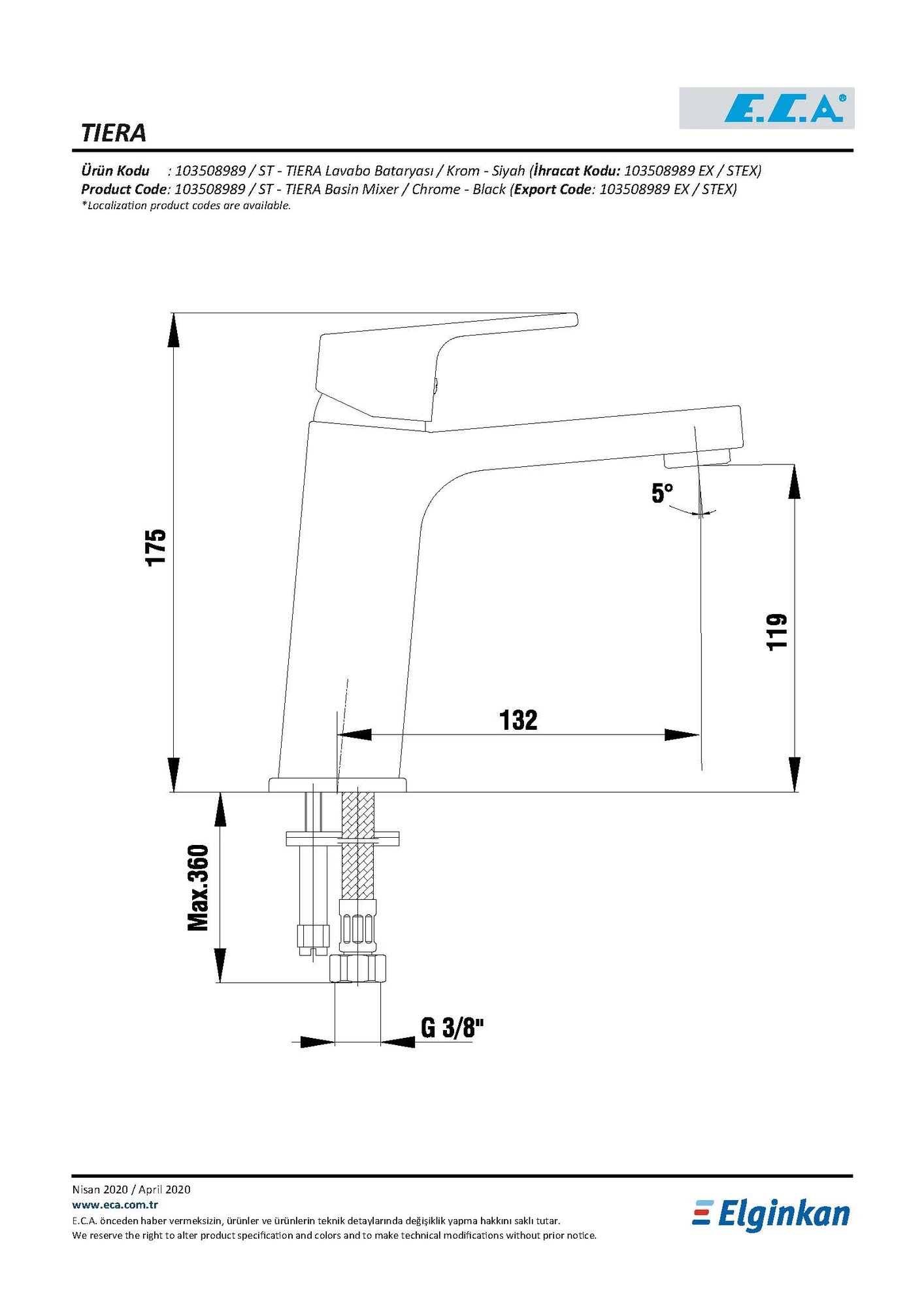 Смеситель E.C.A. Tiera 103508989EX для раковины